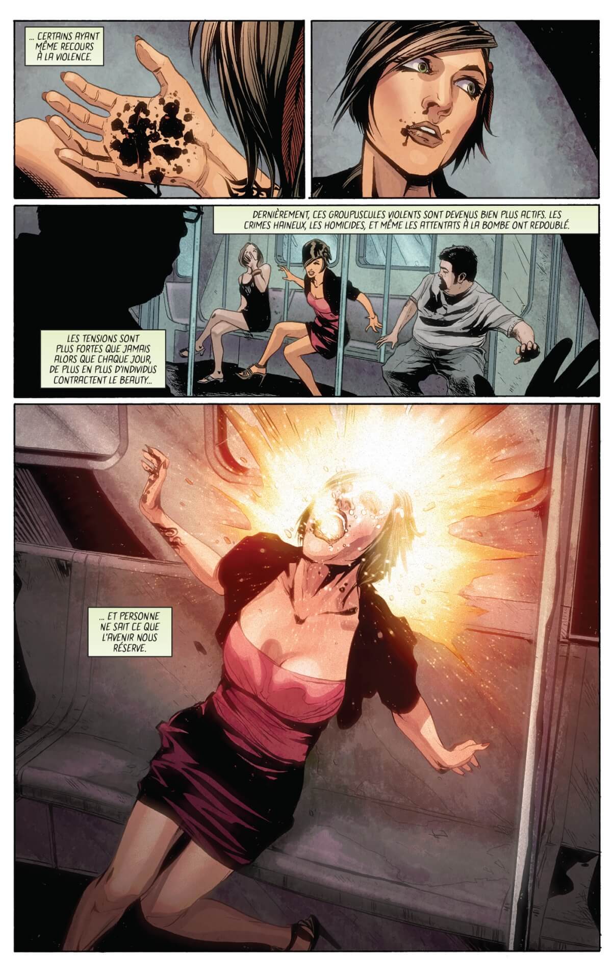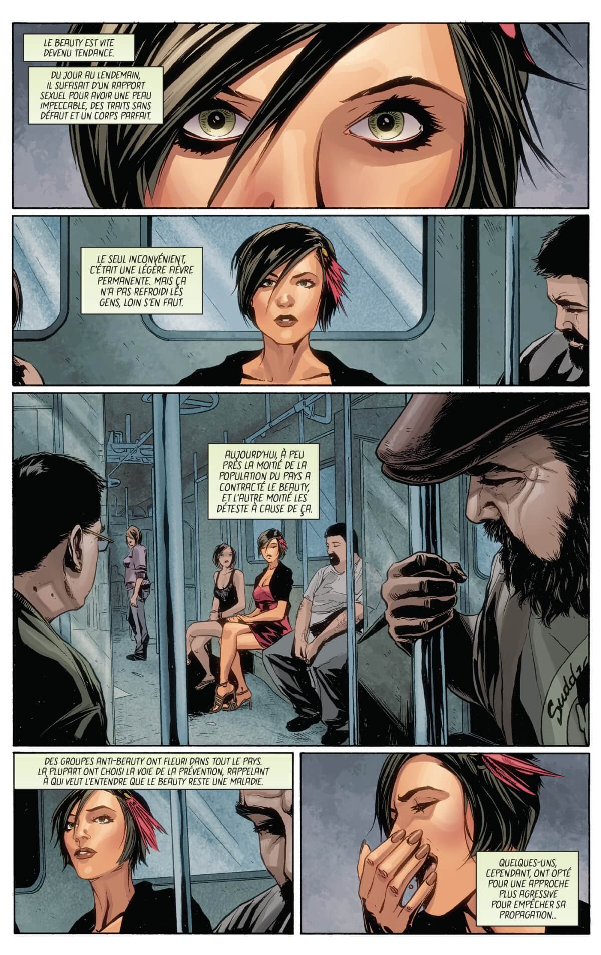 Cette critique de notre monde moderne est très cinglante mais incroyablement vraie. Si demain un tel virus existait, combien serait prêt à prendre le risque d’être contaminé et de devenir aussi sublime qu’il rêve d’être ? Derrière cet incroyable thriller on retrouve un scénariste qui signe avec The Beauty son premier comics, Jason A. Hurley. Jérémy Haun, actuel dessinateur de Constantine chez DC Comics, l’accompagne dans cette aventure au dessin. The Beauty est à retrouver aux éditions Glénat Comics (éditeur de Never Go Home et Power Rangers).
