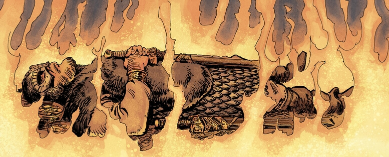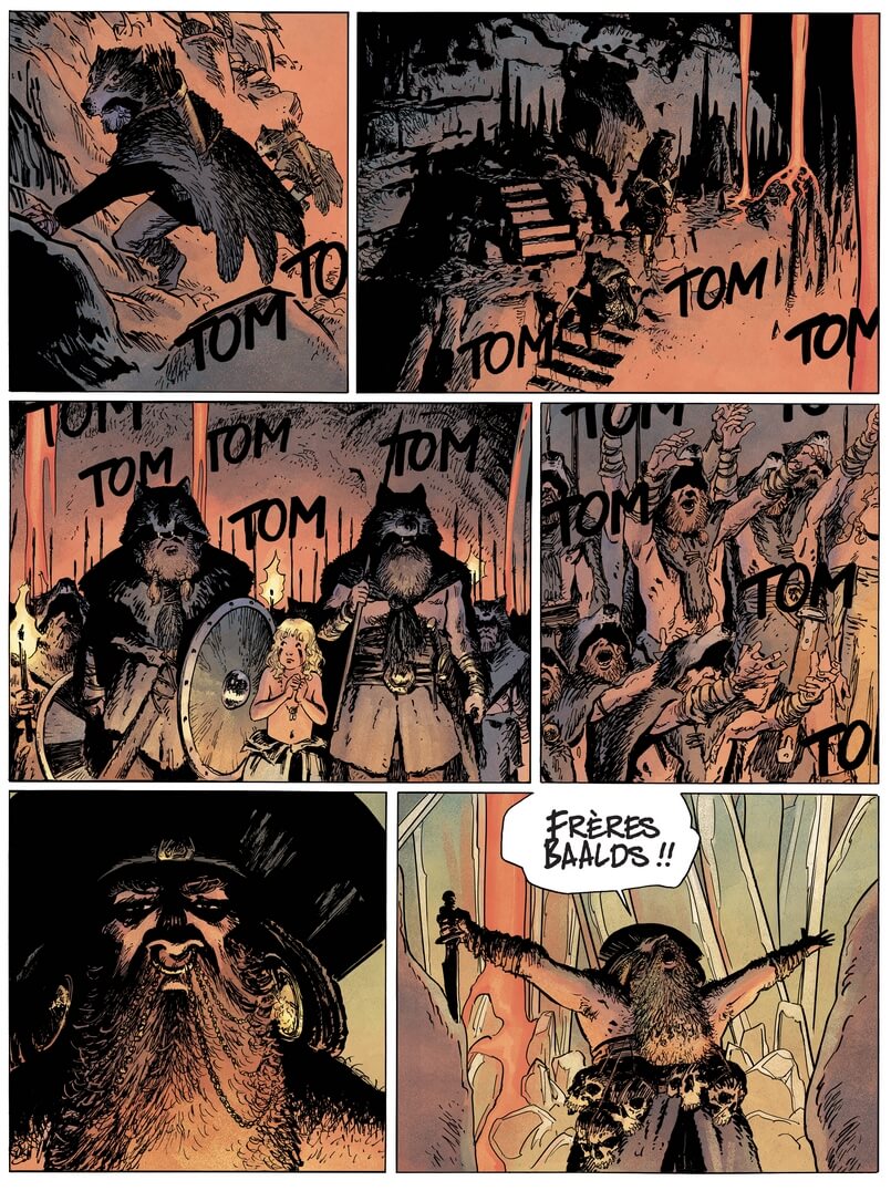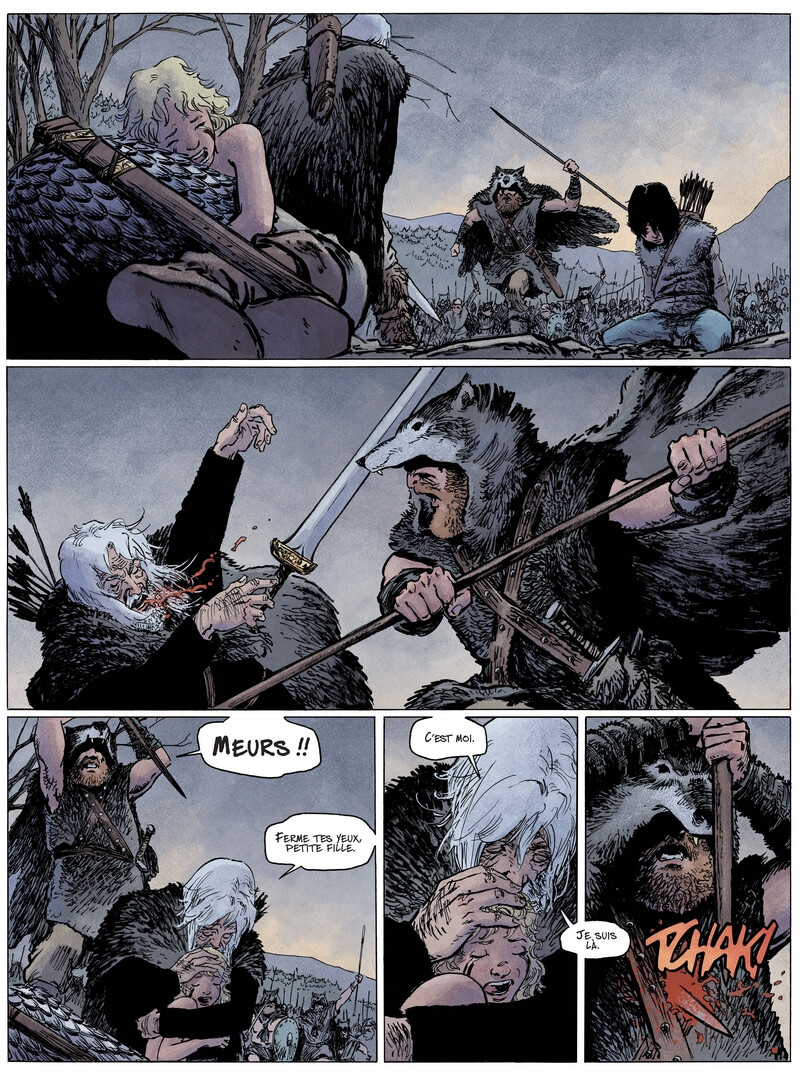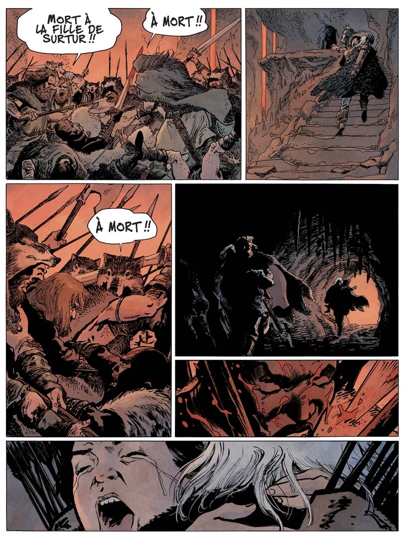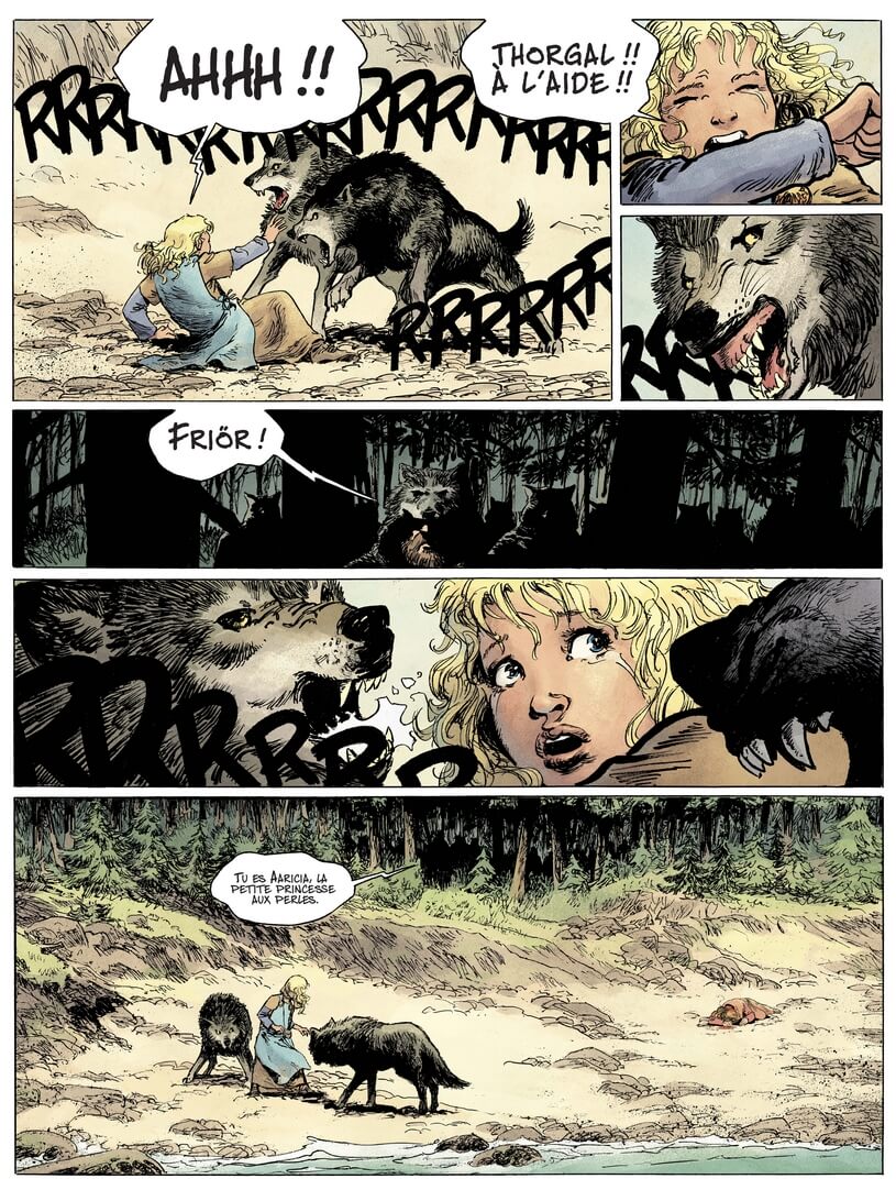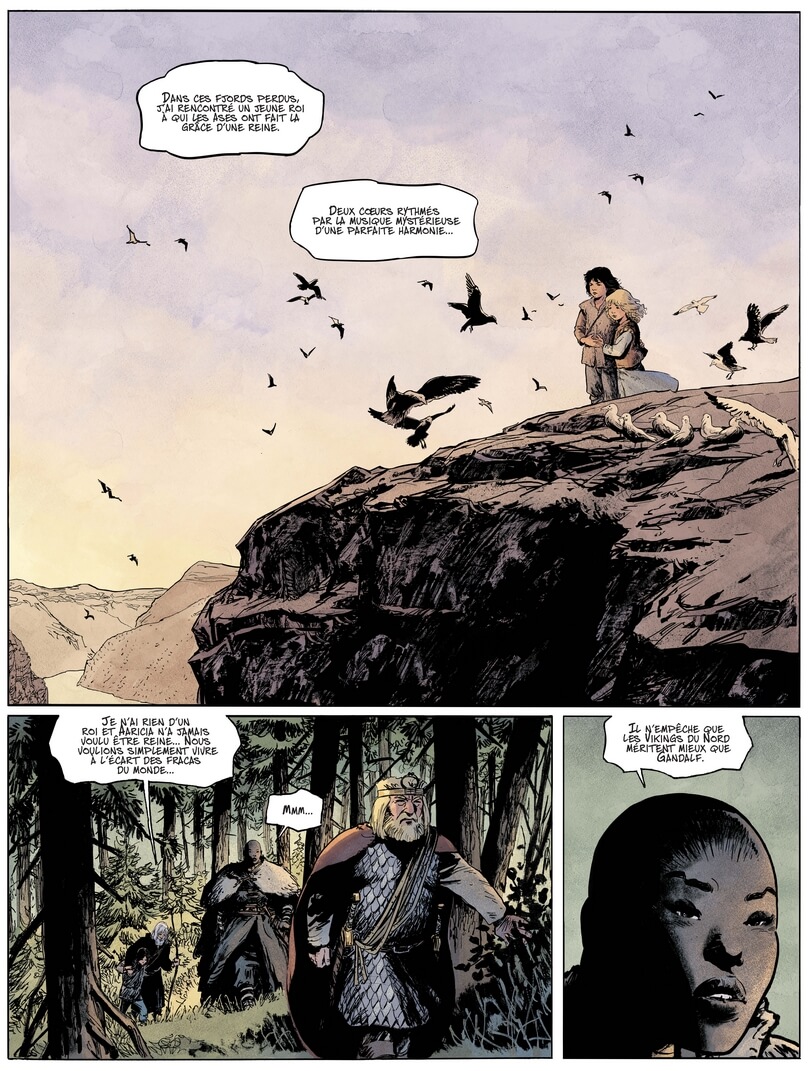 L’auteur d’Adieu Aaricia prend également soin des autres protagonistes. De Gandalf-le-Fou (moins irascible qu’à l’accoutumée) à Hiérulf (le Sage du village intégré en toute finesse pour faciliter la rencontre entre les deux Thorgal), Robin s’autorise également un joli clin d’œil (une bonne occasion de (re)lire son Conan) en mettant en scène Skraeling-la-Noire, personnage inédit. La fille du géant du feu apporte une dimension mythologique chère à la série mère.