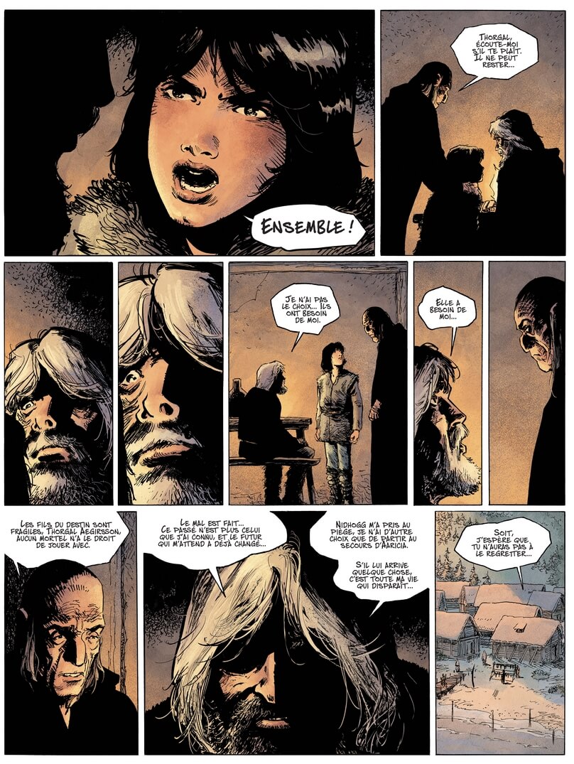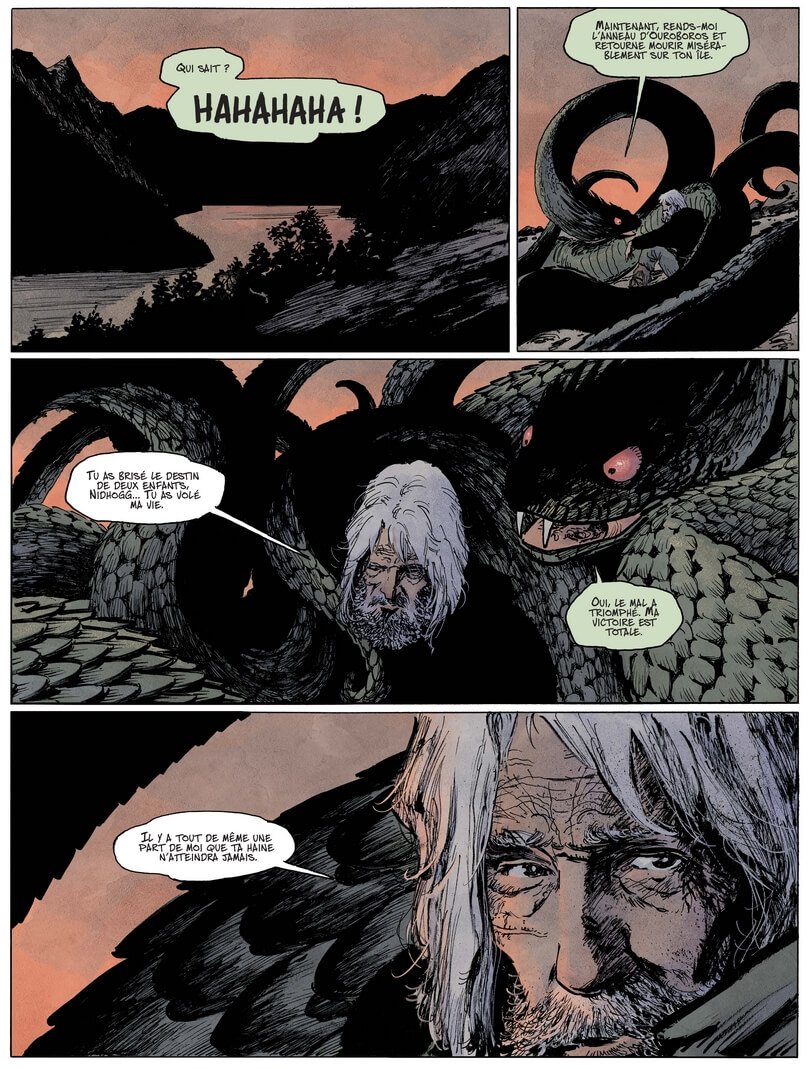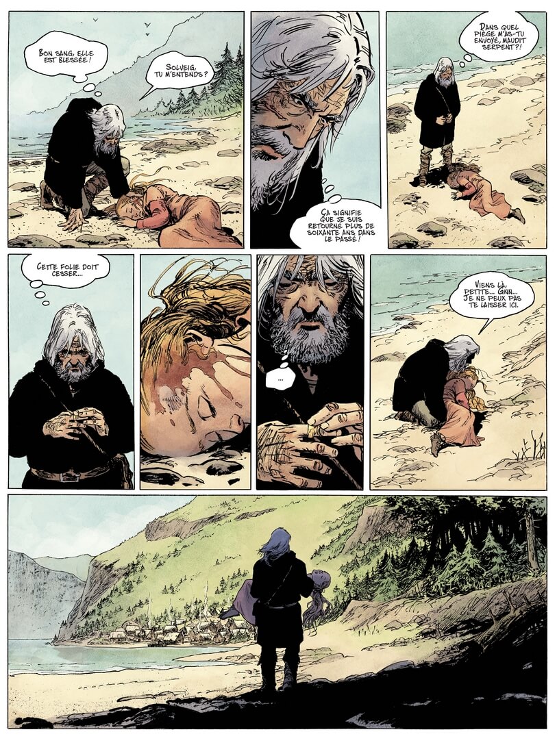Enlevée par les Baalds, Thorgal n’a aucun souvenir de cette épisode de leur vie. Et pour cause, le vieil homme va comprendre que Nidhogg l’a envoyé dans cette lointaine époque afin de réécrire l’histoire et que, cette fois-ci, elle tourne en faveur du sournois serpent.