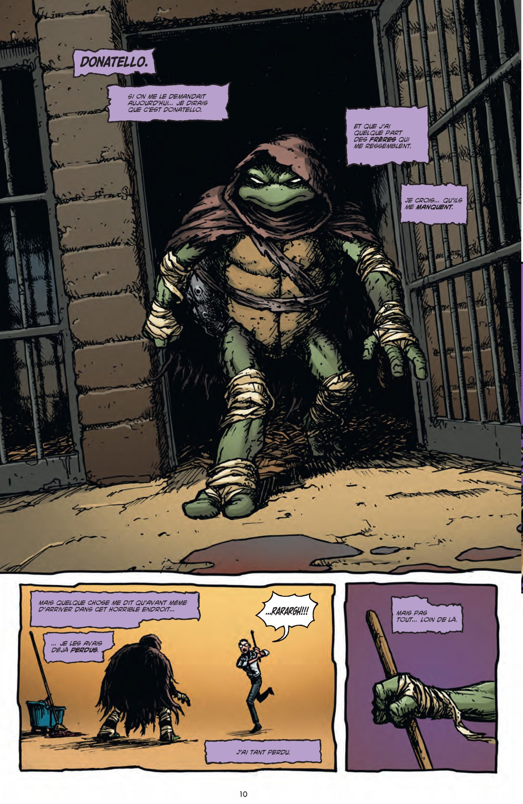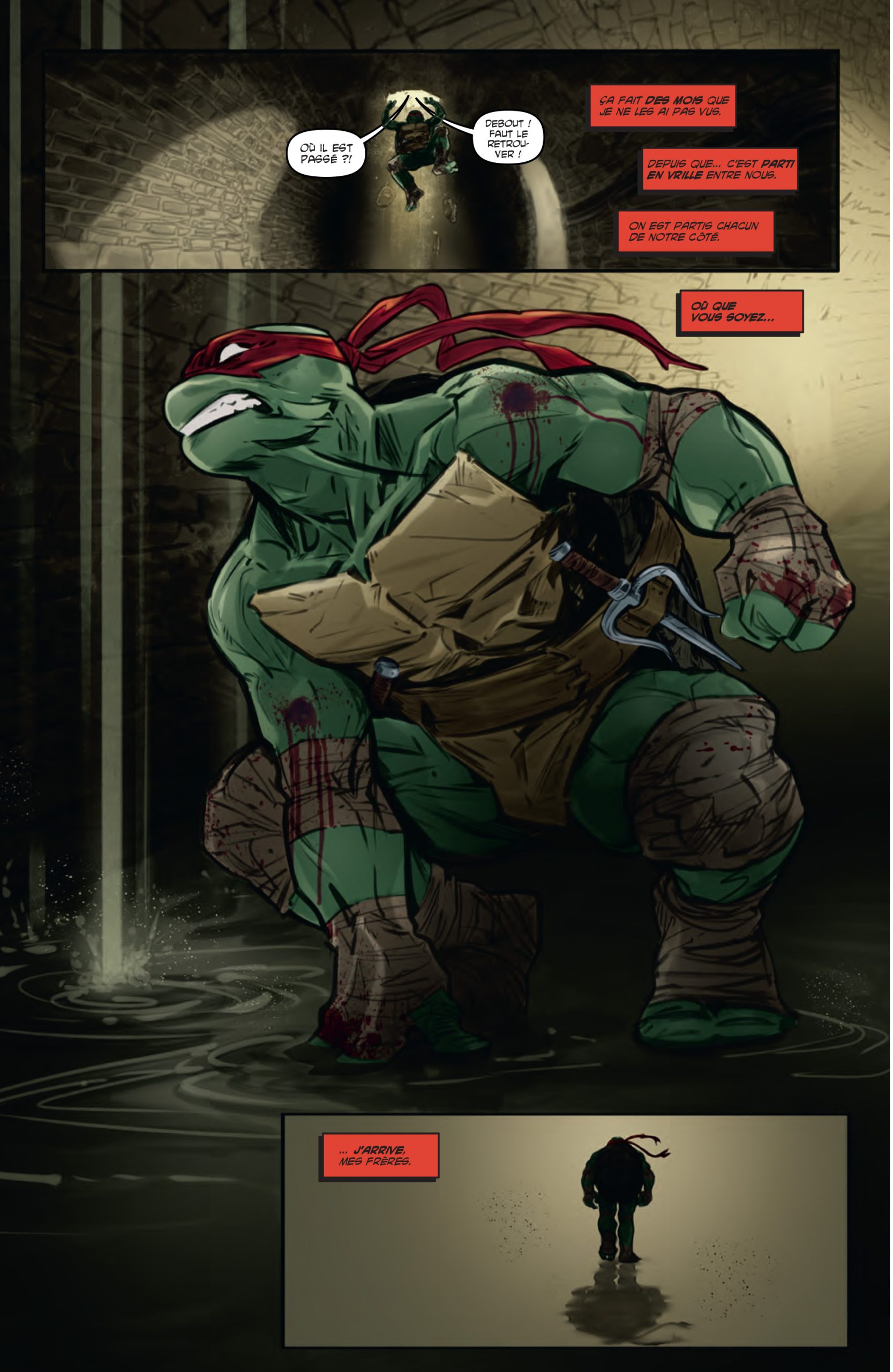 Dans quel but ? Offrir une ambiance différente à chaque épisode, qui est consacré à une tortue en particulier. Chacune se trouvant dans une situation particulière, différente de celle de ses frères, la mécanique fonctionne particulièrement bien. Les forces de chaque dessinateur ou dessinatrice servant avec précision le propos du scénariste.