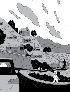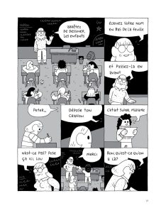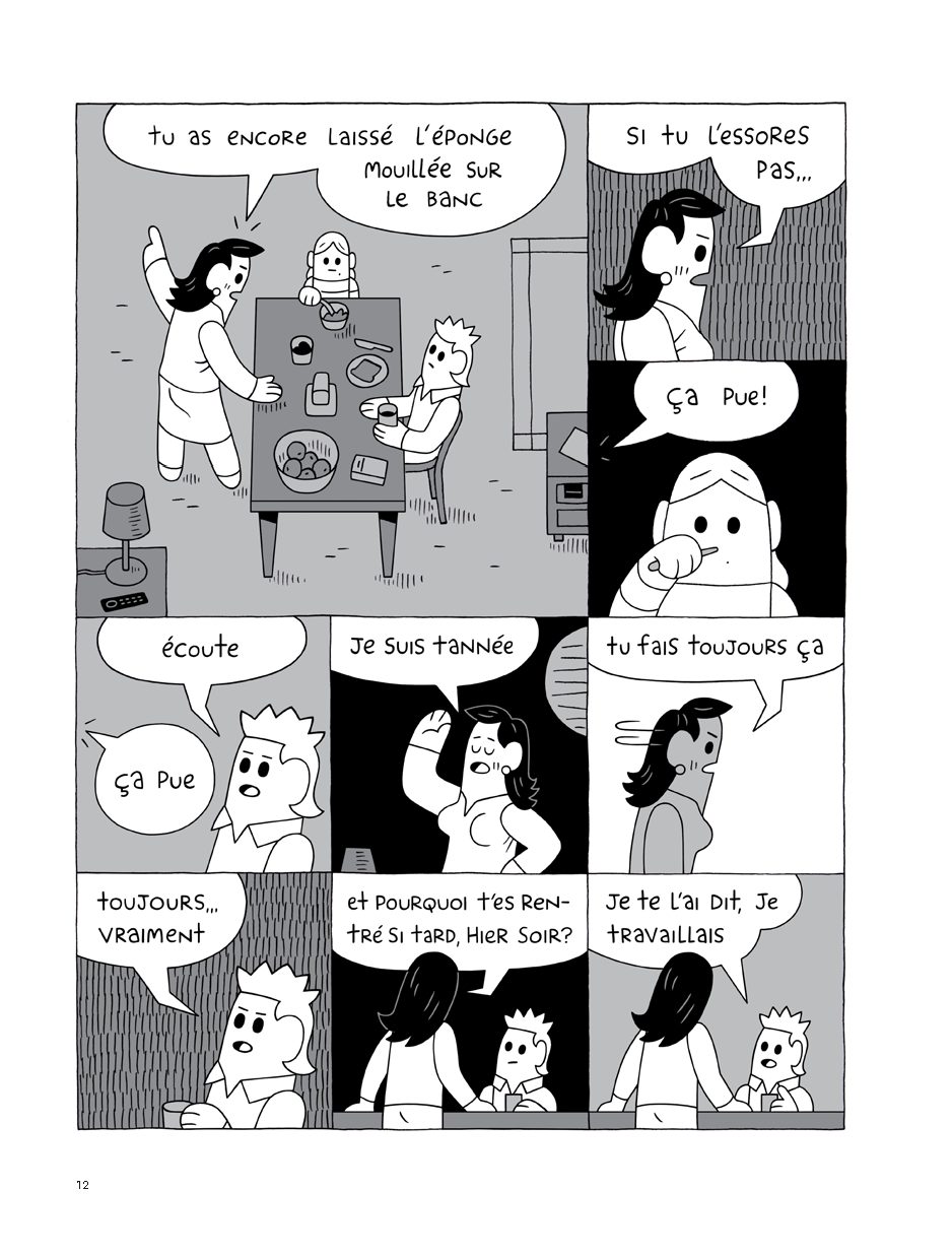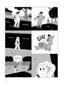 Le dessin du britannique est redoutablement efficace. Lisible et très ligne claire, il est au service de ce récit poignant. Ainsi, ses personnages prennent une forme de tube. Ils n’ont ni pieds, ni véritable cou. Le peu de décors permet de se centrer sur les relations entre les personnages, qui au final, sont très seuls malgré leur entourage. Quant au découpage, il est souvent composé de 6 ou 12 vignettes, pour que les protagonistes puissent s’exprimer.