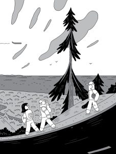 Ned Wenlock, dont c’est le premier album édité par Pow Pow, imagine ainsi cette histoire sombre et tragique. Un point de non retour jusqu’au drame ? La tension est palpable tout au long des 282 pages. Un engrenage lent et insidieux.