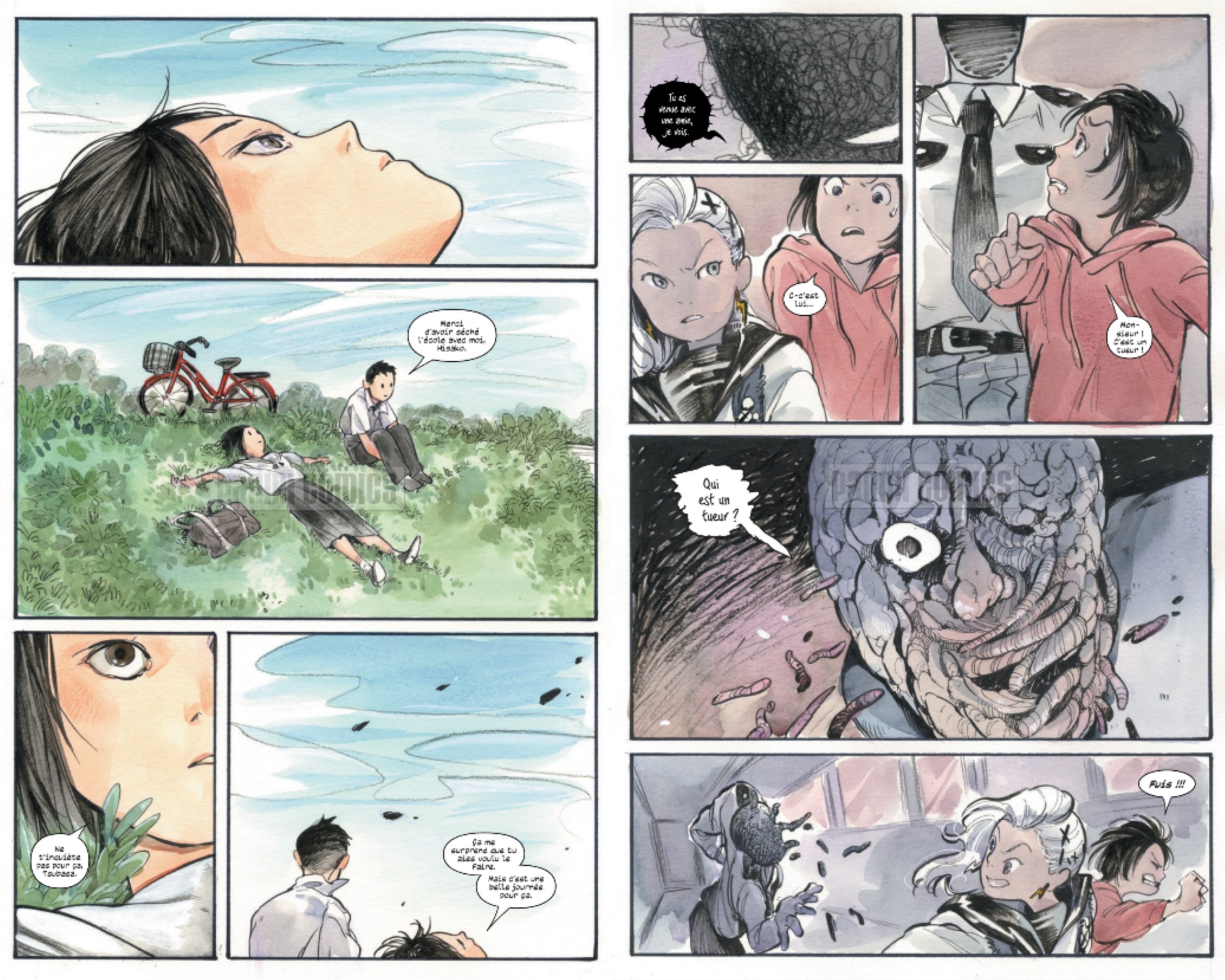 Résumé de l’éditeur : La jeune Hisako Ichiki mène une vie ordinaire sur le territoire d’Hi no Kuni, l’équivalent du Japon de notre monde. Mais le suicide de son ami Tsubasa, qui était harcelé, vient chambouler son existence… Depuis ce tragique événement, elle est poursuivie par une entité prenant la forme d’une ombre.
