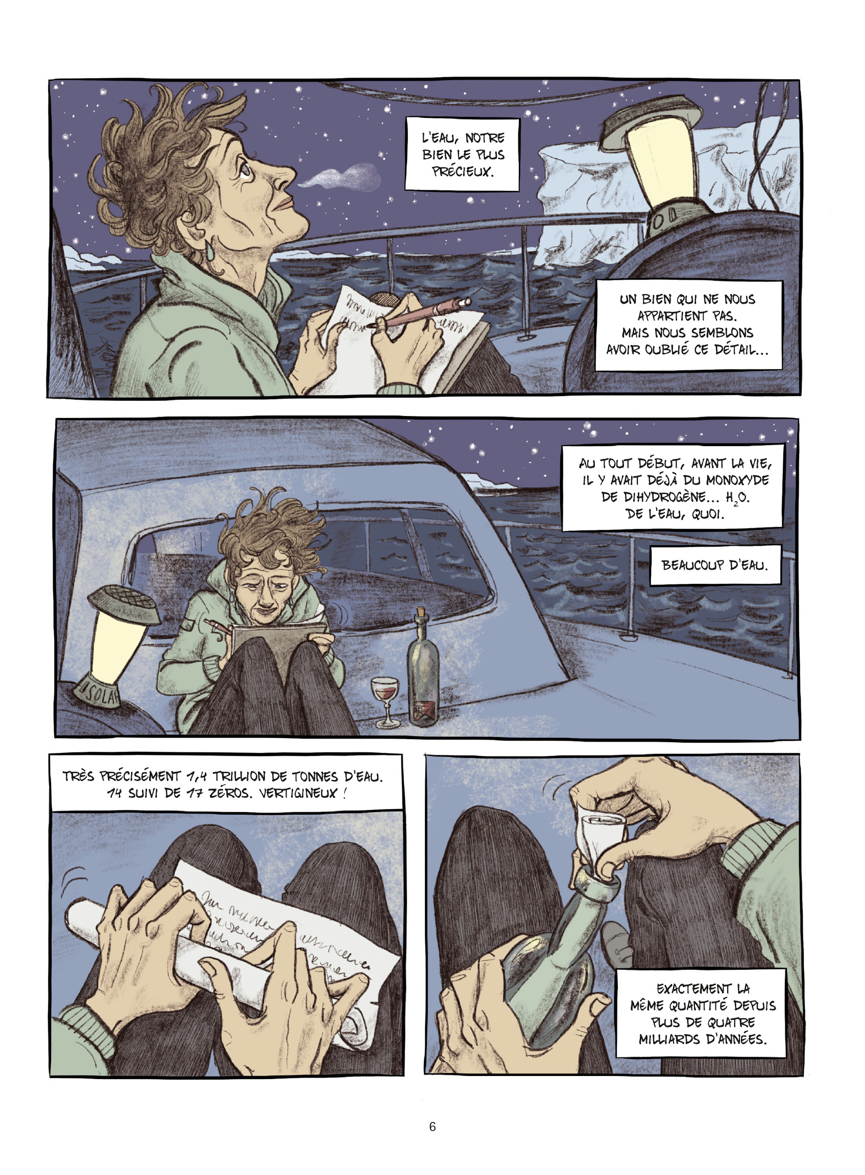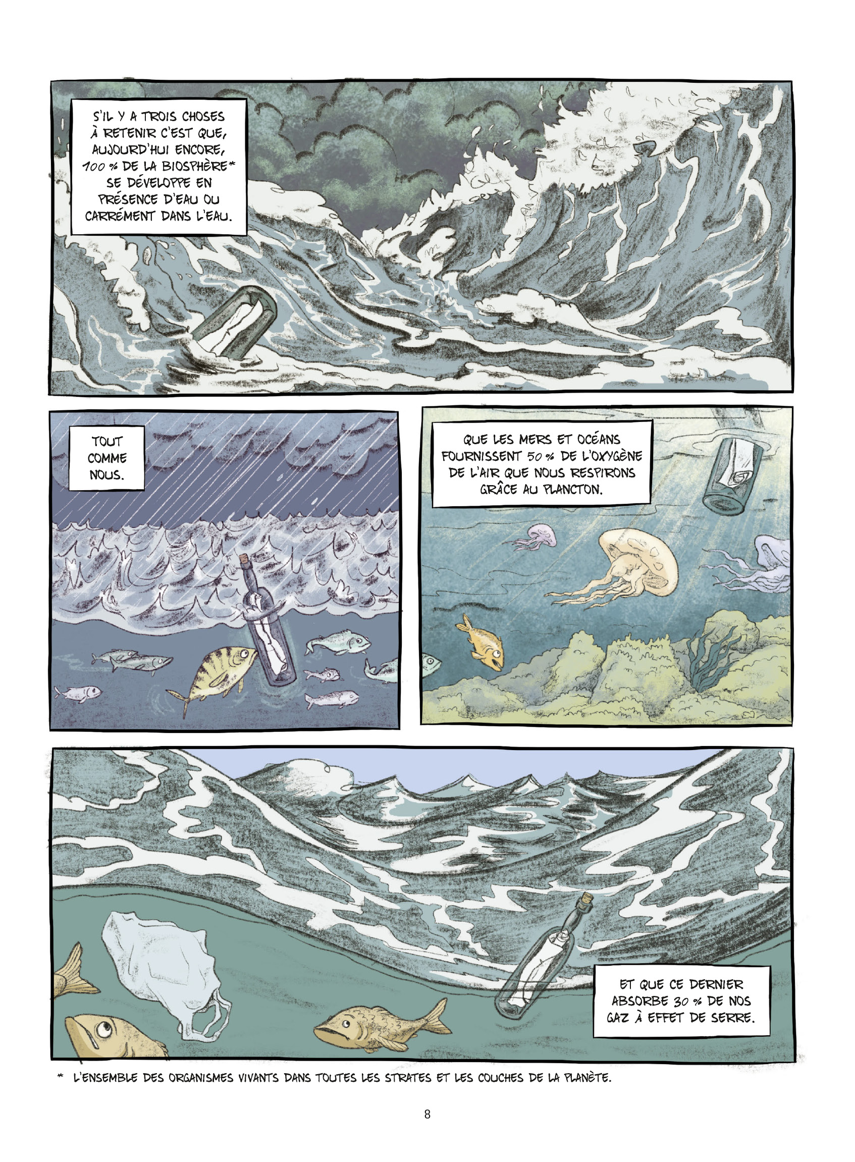 Ce livre, c’est Une bouteille à la mer, un reportage dessiné co-édité par Futuropolis et les éditions Stock qui embrasse en quelques 160 pages les grands enjeux environnementaux autour de l’avenir des mers et des océans.