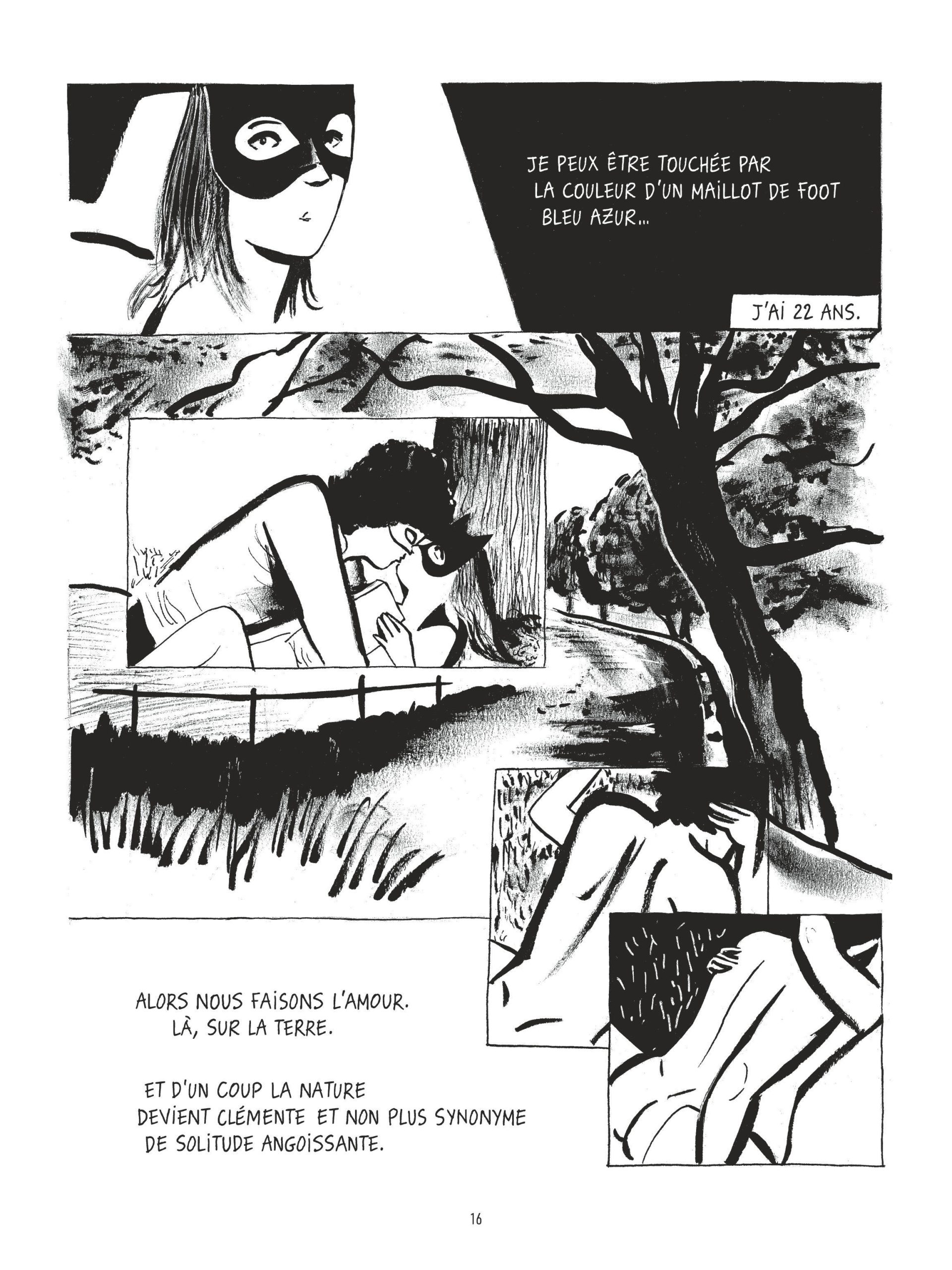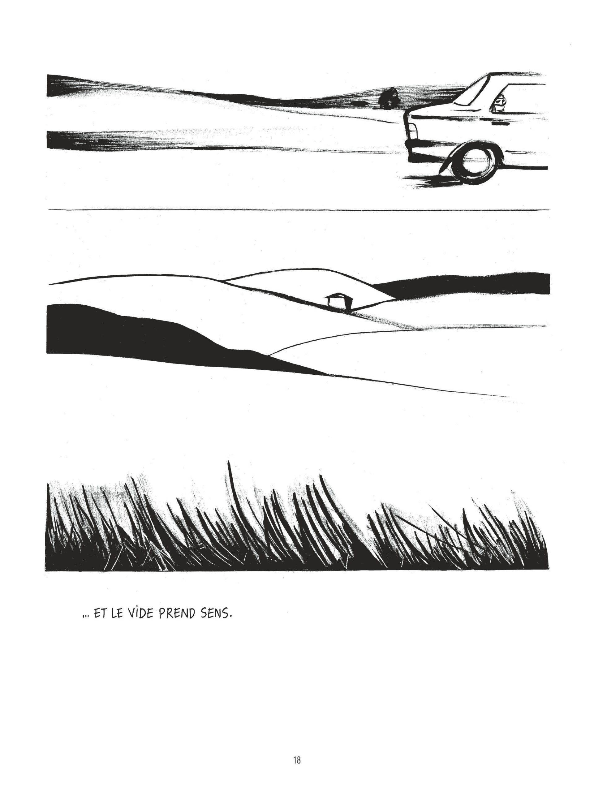L’apport graphique, tout en pudeur, traits fins et structure éclatée, marche main dans la main avec une voix libre, s’amusant d’un ton parfois cruel, parfois tendre, souvent poétique : « Quand j’observe le paysage, la seule pensée qui me réjouit, c’est qu’il n’y a pas de parcelle de terre qui n’ait, à un moment ou à un autre de l’humanité, abrité les ébats d’un homme et d’une femme. (…) Et soudain, le vide prend sens.»