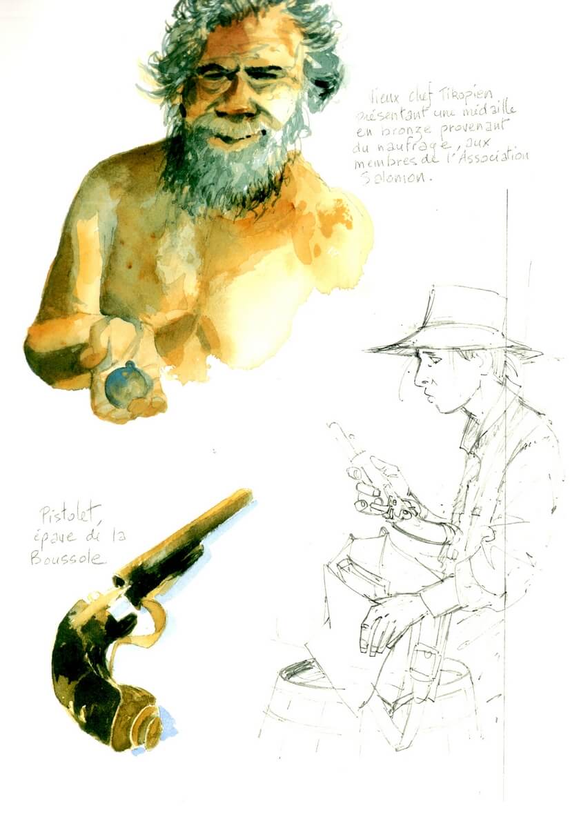 Mais c’est bien autour de ces coupeurs de tête que règne une atmosphère anxiogène. L’île de Vanikoro est habitée. Et nos marins, officiers ou savants se rendront vite compte que les autochtones ne sont pas très accueillants.