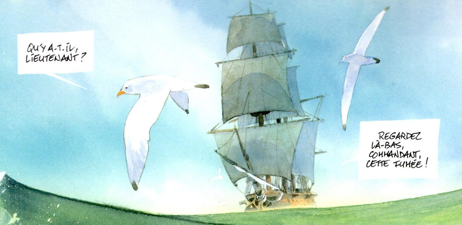 Résumé de l’éditeur : Le 1er août 1785, deux frégates de la Marine Royale, la Boussole et l’Astrolabe, quittent le port de Brest. À leurs bords, deux cent vingt marins, matelots, officiers et scientifiques prêts pour un long voyage autour du globe qui doit durer quatre ans. À leur tête, le capitaine de vaisseau Jean-François de Galaup, comte de Lapérouse, sait combien cette expédition en ce siècle des Lumières est le rêve de son roi. Les escales se succèdent tandis que les cales s’emplissent de plantes, fleurs, insectes, étoffes, épices et de tant d’autres trésors inestimables. Au mois de mars 1788, les deux frégates appareillent de Botany Bay sur la côte Est australienne et font voile vers l’archipel des îles Salomon. Dans quelques mois, ils seront à l’île de France (actuelle Saint Martin). L’histoire débute en ce mois de juin 1788, tandis qu’une terrible tempête menace de faire échouer les deux vaisseaux sur les récifs coraliens d’une île inconnue : Vanikoro !