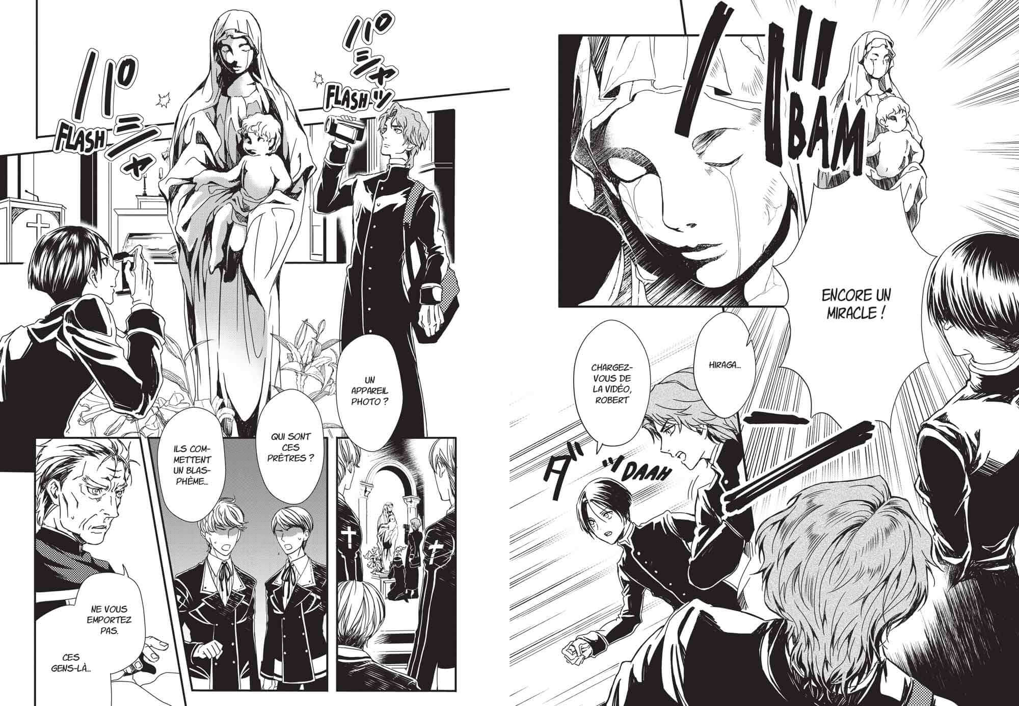 Résumé de l’éditeur : Il existe au sein du Vatican une institution spéciale appelée le « Siège du Disciple’ qui est chargée d’enquêter sur la véracité de supposés miracles. Nous allons suivre les enquêtes de deux de ses membres : le père Hiraga, un scientifique qui bien qu’étant un catholique dévoué préfère toujours une explication technique plutôt que basée sur des superstitions, et son collègue, le père Nicholas, est un expert en vieux manuscrits et en crypto analyse.