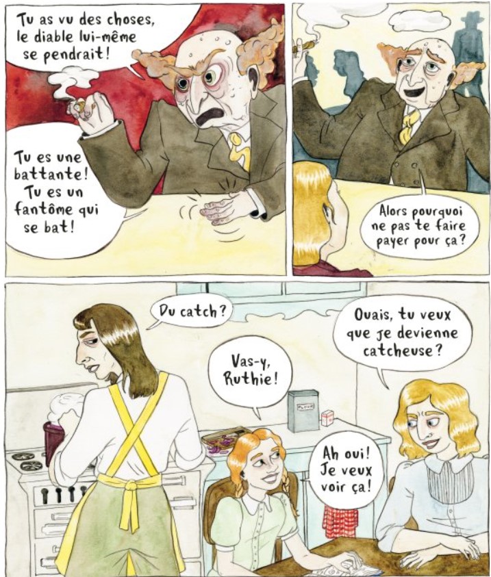 Même loin de New York, la guerre est bien présente chez ces trois femmes. Ruth, d’origine allemande, est là pour leur rappeler les traumatismes liés à l’antisémitisme qu’elle a subis alors qu’elle habitait à Berlin. C’est pour cela que la jeune femme souhaite prendre une revanche sur la vie. Celle-ci aura la forme de combats de catch auxquels elle va participer. Comme pour ainsi matérialiser sa lutte contre l’Allemagne nazie.
