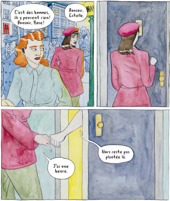 Résumé de l’éditeur : Rose Arensberg fait partie d’une équipe de femmes travaillant comme soudeuses sur le chantier naval de Brooklyn pendant la Seconde Guerre mondiale. Elle entretient une relation amoureuse avec un vétéran, en attendant le retour de son mari, Sam, engagé sur le front en Europe. Rose doit faire face à un quotidien difficile, tout en s’occupant d’Eleanor, sa petite fille impressionnable, et aussi de Ruth, une réfugiée juive allemande qu’elle héberge. Ruth va tenter d’exorciser le trauma de son enfance dans l’Allemagne nazie d’avant-guerre en devenant lutteuse professionnelle, avec des conséquences dévastatrices. Quant à Sam, les horreurs découvertes à la libération d’un camp de concentration le poursuivront jusqu’à son retour à Brooklyn sous la forme de flashbacks terrifiants qui le marqueront à jamais. Victory Parade brosse un portrait profondément émouvant de ces femmes résilientes inspirées de la fameuse « Rosie la riveteuse », et dépeint la façon dont les individus subirent les traumatismes de la guerre. Magnifiquement dessiné et parsemé d’hommages à Otto Dix, Victory Parade est un voyage expressionniste à travers les champs de bataille du coeur humain et les charniers de la Shoah.