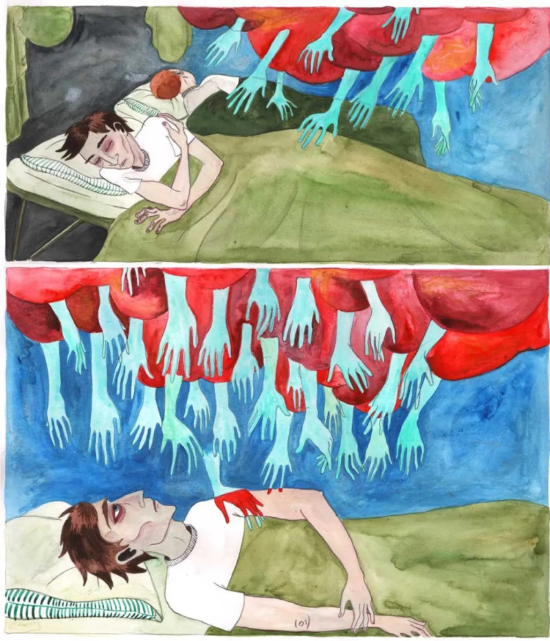 Il est dans l’incapacité de s’exprimer ou d’expliquer ses angoisses. Comment est-il possible que quelqu’un puisse croire ce qu’il a rencontré ? Alors des hallucinations et des cauchemars viennent hanter ses jours et ses nuits. Et cela malgré la présence rassurante de sa femme et de sa fille.