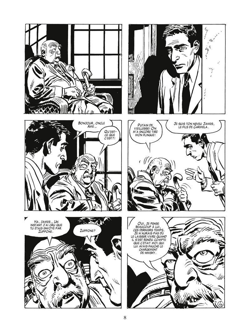 Cette savoureuse épopée, servie à merveille par le trait saisissant en noir et blanc de Domingo Mandrafina, alterne le tragi-comique sur fond de magouilles, meurtres, argent, liaisons et trahisons. C’est un sacré polar. Le rythme est haletant, l’humour noir et truculent. Un must.