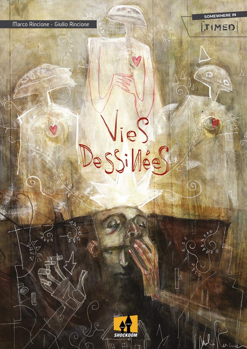 Vies dessinées est un album singulier édité par Shockdom et réalisé sous l’émotion fraternelle des textes de Marco Rincione (Poly-A) et des dessins/couleurs de Giulio Rincione (Le cœur de la cité). Sa lecture nous propose une perception du monde extérieur qui entraîne une représentation intime de ce que l’on vit, de ce que l’on rencontre dans notre propre perception à la société qui nous entoure.