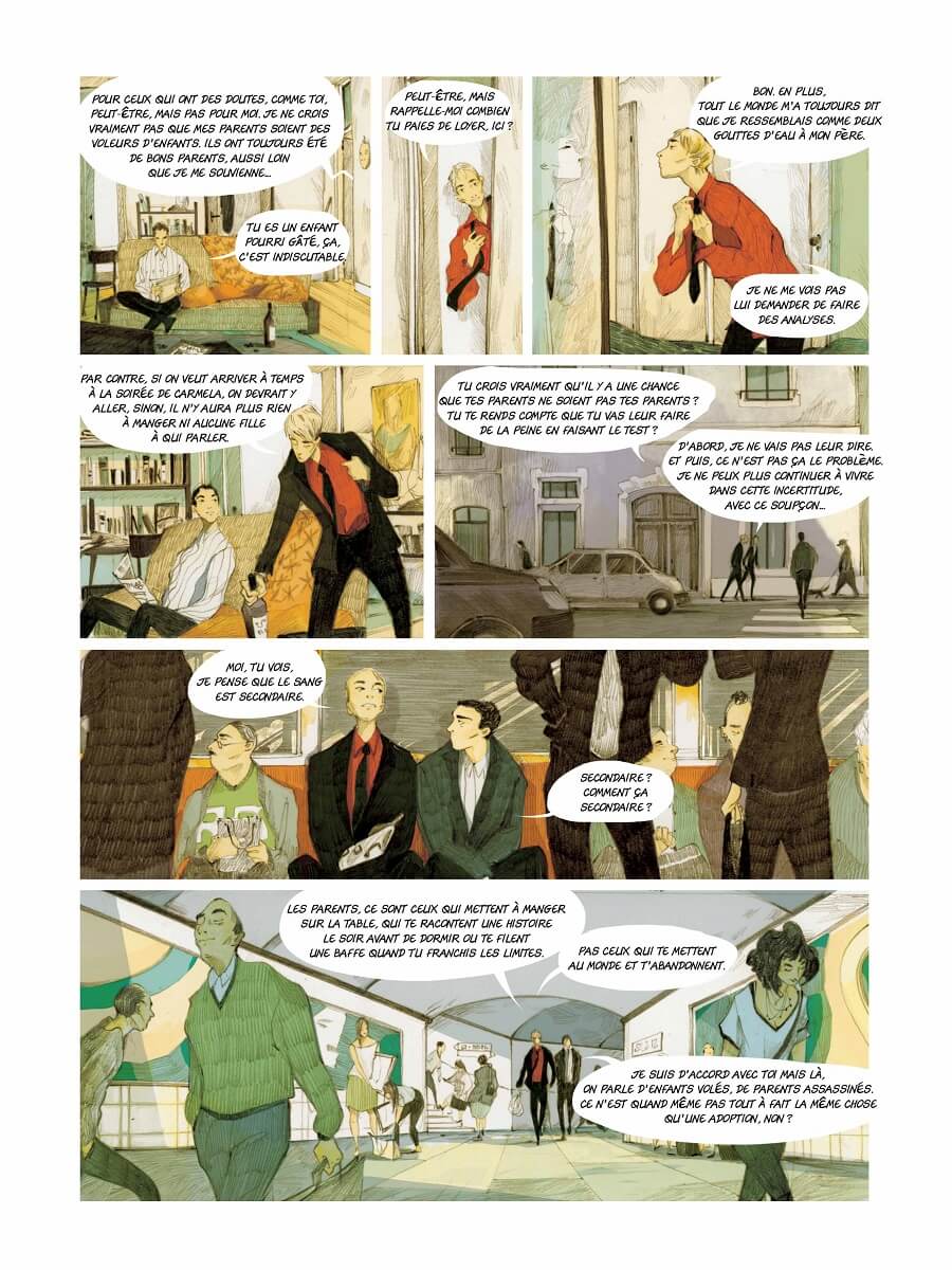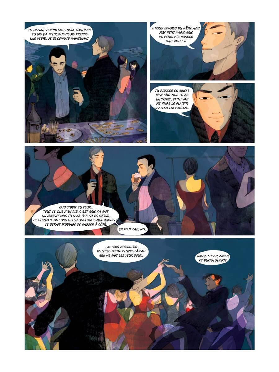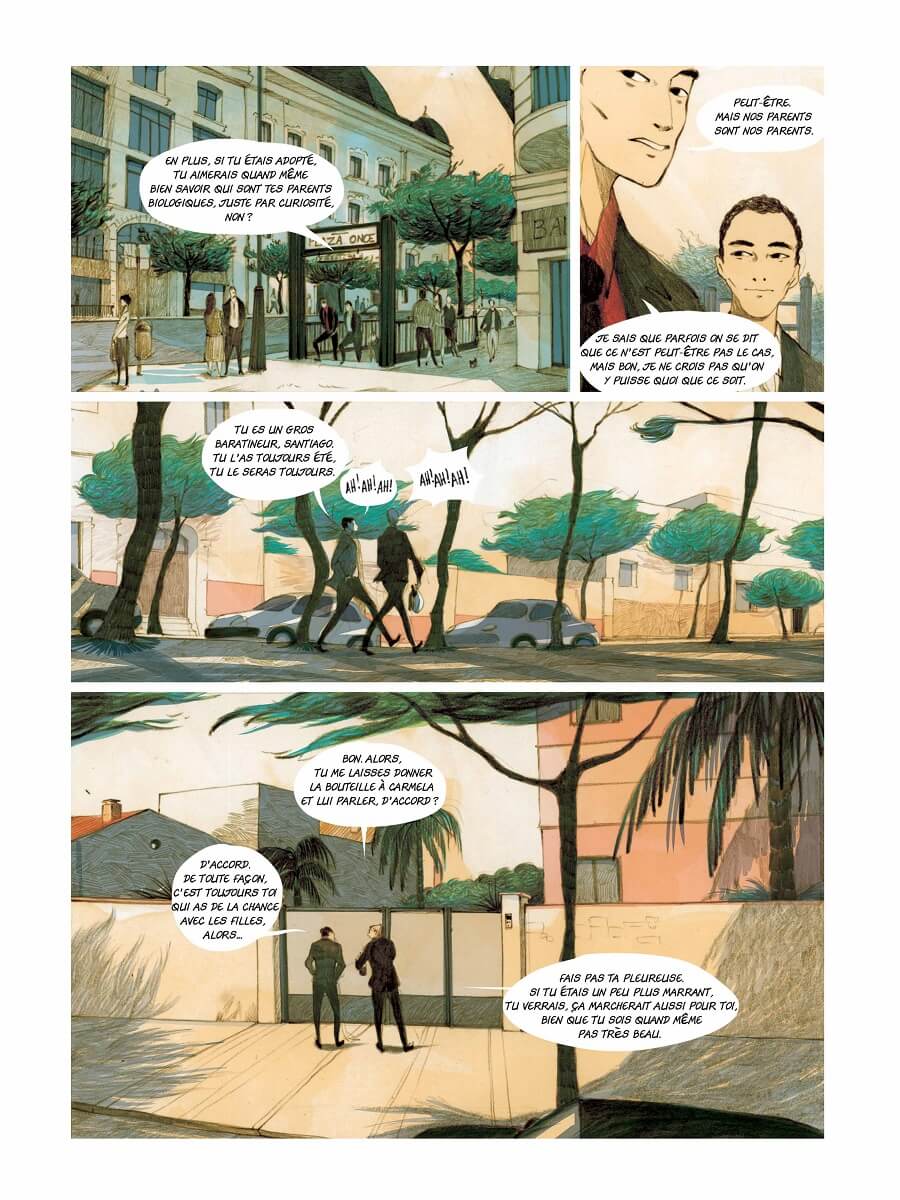 Pour incarner au mieux cette quête d’identité (parfois tragique pour certains), le scénariste de Tango (avec Philippe Xavier) imagine le destin de deux jeunes amis. Sans dévoiler la suite de l’histoire, l’on peut dire que l’on va de surprise en rebondissement, qu’une belle histoire d’amour nait, que l’amitié entre Mario et Santiago sera mise à rude épreuve et que les relations entre leurs parents respectifs seront tendues.