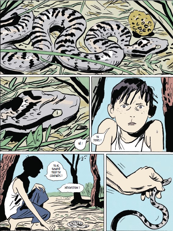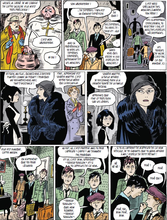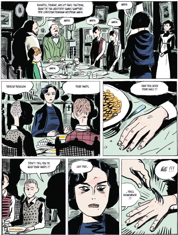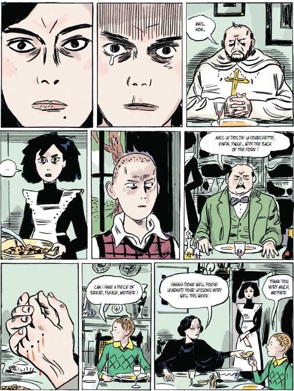 Avec son trait sombre et incisif, voire tranchant, l’auteur nous propose une belle adaptation de ce roman témoignage. Celui d’un adolescent prêt à tout pour s’éloigner de sa marâtre, il faut bien la qualifier ainsi. Les oppositions entre la mère et les fils sont parfaitement bien rendues à la fois avec le texte mais surtout avec ces face-à-face visuels qui ruissellent la haine. Que ce soit de la part du fils, mais surtout de la mère.