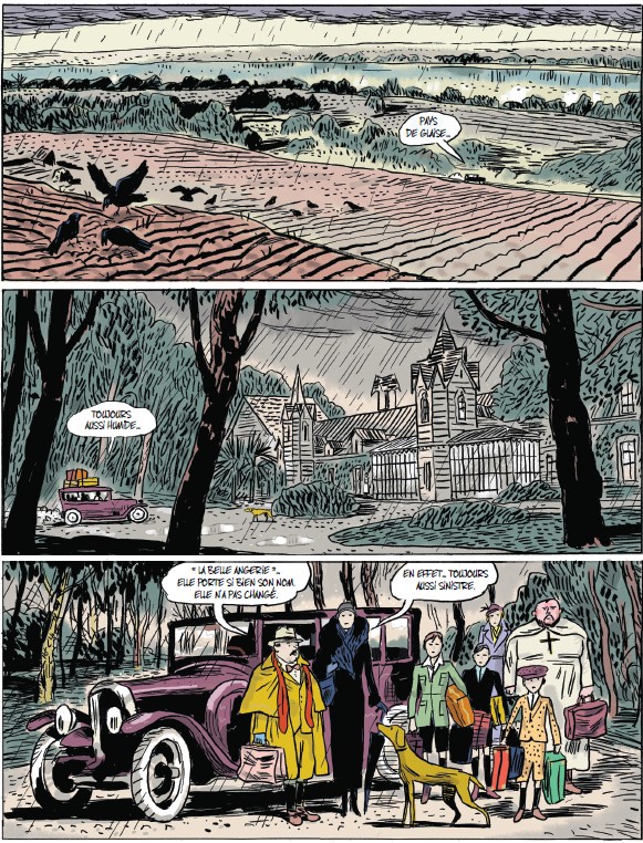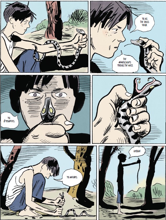 Grâce à des tonalités extrêmement sombres et froides, l’univers dans lequel évoluent Jean et Ferdinand s’est obscurci dès l’arrivée de leur mère. Les extérieurs, la maison sont devenus des lieux hostiles puisque sous l’entière coupe de cette maîtresse femme. En effet, malgré la présence du père pourtant bienveillant à l’égard de ses fils, mais totalement absent, une chape de plomb s’est abattue sur la vie de cette famille. Un piège duquel Jean fera tout son possible afin de s’en échapper. Tel un animal traqué.
