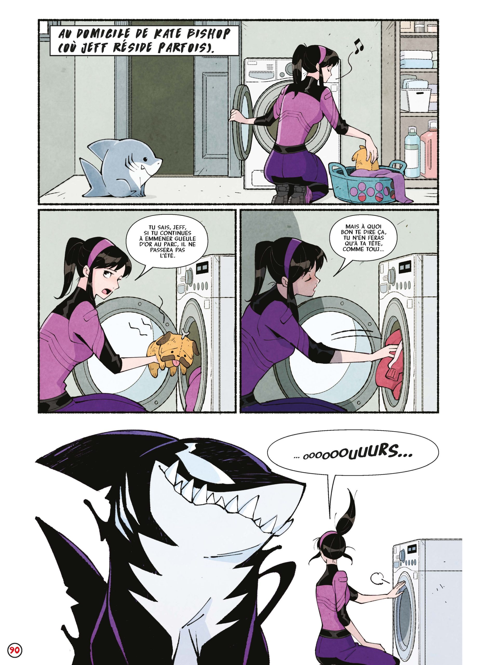 Jeff est un requin quadrupède. Il vit avec Gwenpool et Hawkeye mais ne craint pas de se mêler à la communauté des super-héros, surtout avec ses copains animaux et créatures accompagnant d’autres héros. Le super-pouvoir de Jeff ? Les super-bêtises ? Alors imaginez ce que cela pourrait donner si en plus, il était lié au symbiote de Venom ?