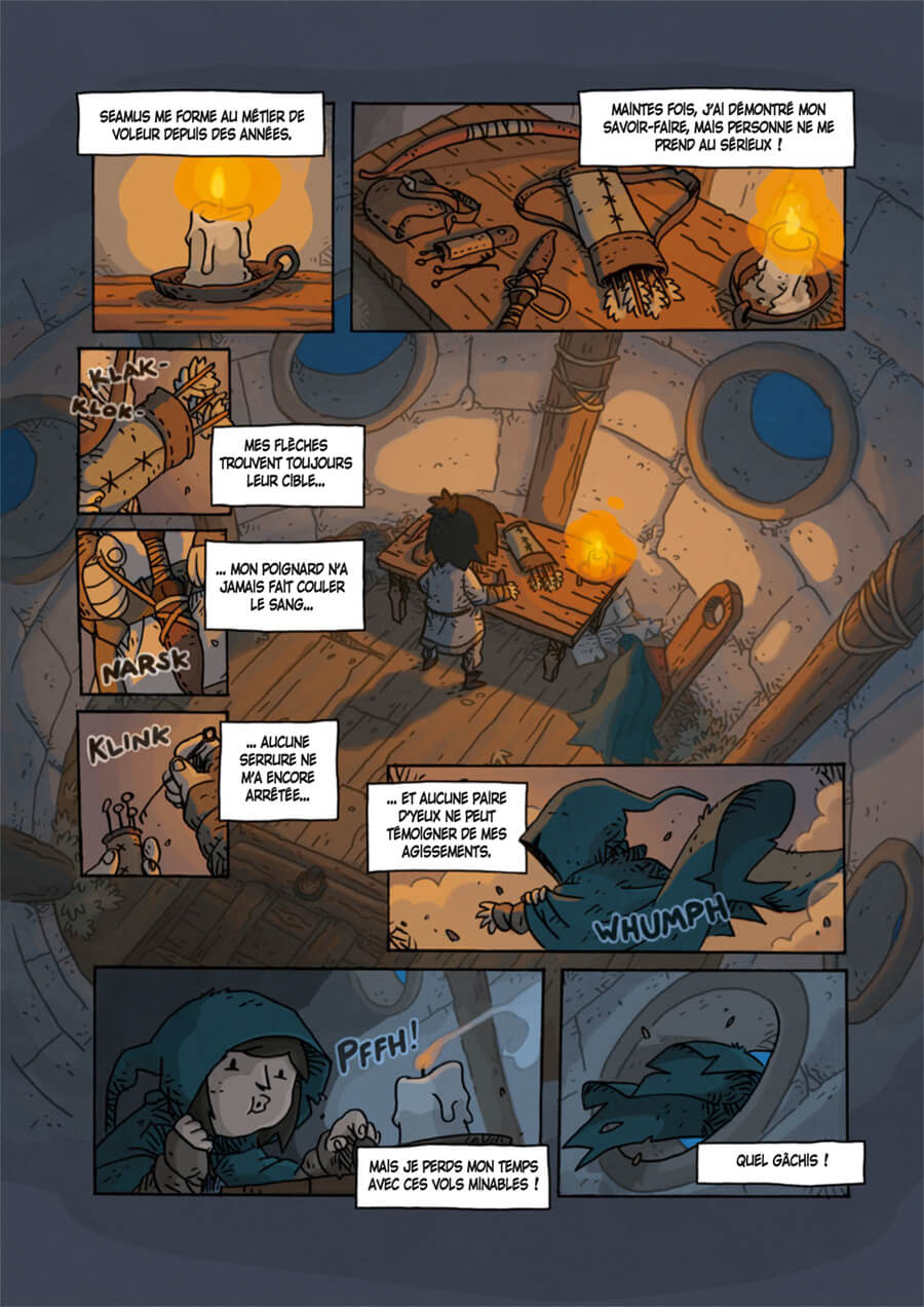 Résumé de l’éditeur : Suivez les aventures de la plus téméraire des voleuses de la guilde ! Lilya est une jeune fille que son protecteur et ami, le vieux Seamus, a introduite dans la Guilde des voleurs. Mais le maître des voleurs ne l’apprécie point, jugeant qu’elle n’est bonne qu’à faire le ménage ou entrer au bordel… Quand elle comprend qu’elle ne sera jamais admise dans la Guilde, elle décide d’agir seule et se retrouve fourrée dans une affaire qui la dépasse : la lutte ancestrale de trois rois, dont le trésor repose dans un lieu secret que seules trois clés peuvent ouvrir. Le comte de la ville prend Seamus en otage pour obliger Lilya à retrouver ces clés. Malheureusement, celles-ci ne donneraient pas accès à un trésor, mais provoqueraient plutôt la résurrection d’un dieu maléfique, vénéré par une secte de fanatiques qui a envoyé un terrible guerrier aux trousses de Lilya… Un cocktail détonnant d’action et d’aventure !