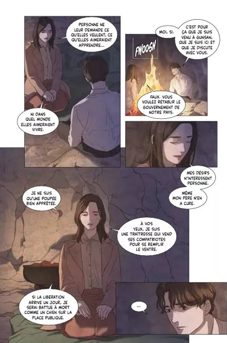 Rare sont les webtoons à s’inscrire dans un contexte historique réel. Plus rares encore sont les titres à explorer cette période sombre de la Corée du Sud et du Japon. Et l’alliance des deux forment une tragédie au sens le plus littéraire du terme. L’atmosphère est lourde. Derrière chaque rebondissement se cache une conséquence terrible. Le conte devient un drame.