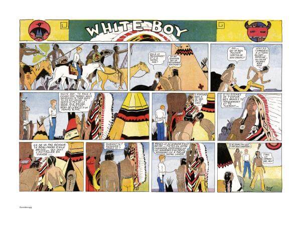 De tous les westerns que nous avons lus, White Boy est un des plus émouvants. Dans ce strip, sans doute pour la première fois, les Indiens ne sont plus des sauvages arrachant les scalps des braves pionniers.. Ils ont le premier rôle de cette histoire, dans cet Ouest où le blanc n’est plus chez lui.