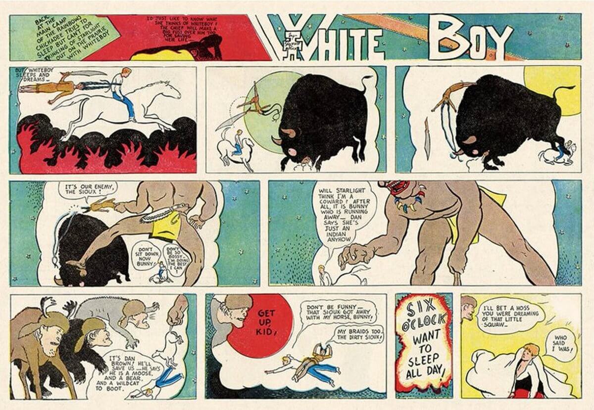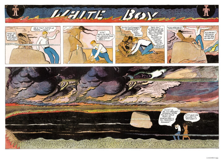 Capturé par la tribu des arcs-en-ciel, White Boy est élevé par eux comme un Indien. Les éditions 2024 publient ce western novateur à l’époque de sa création en 1933 par Garrett Price. Une très belle surprise dans la sélection patrimoine du festival d’Angoulême 2023.