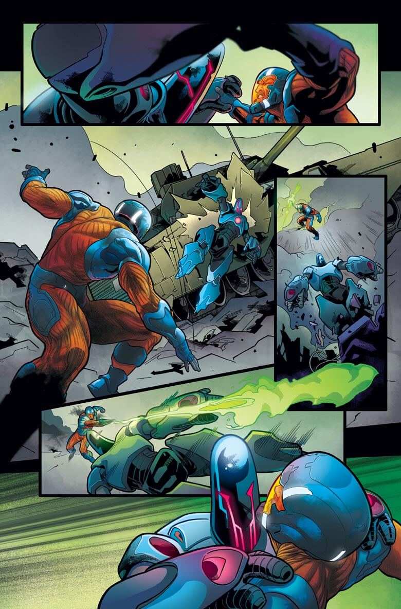 De plus, comme toujours avec l’univers Valiant (Rai, Psi-Lords, Punk Mambo), les héros ressemblent à d’autre issus des grandes franchises. X.O Manowar ne fait pas exception. Sa puissance rappelle celle de Superman, les robots humanoïdes et la super armure font bien entendu penser à Iron Man. Mais la corde que Dennis Hopeless exploite le plus est le décalage psychologique que subit le Wisigoth Aric, plongé dans un New-York contemporain. Et là, c’est plutôt le Thor tel qu’il est développé dans l’univers Ultimates de Mark Millar (Chrononauts) qui vient à l’esprit.