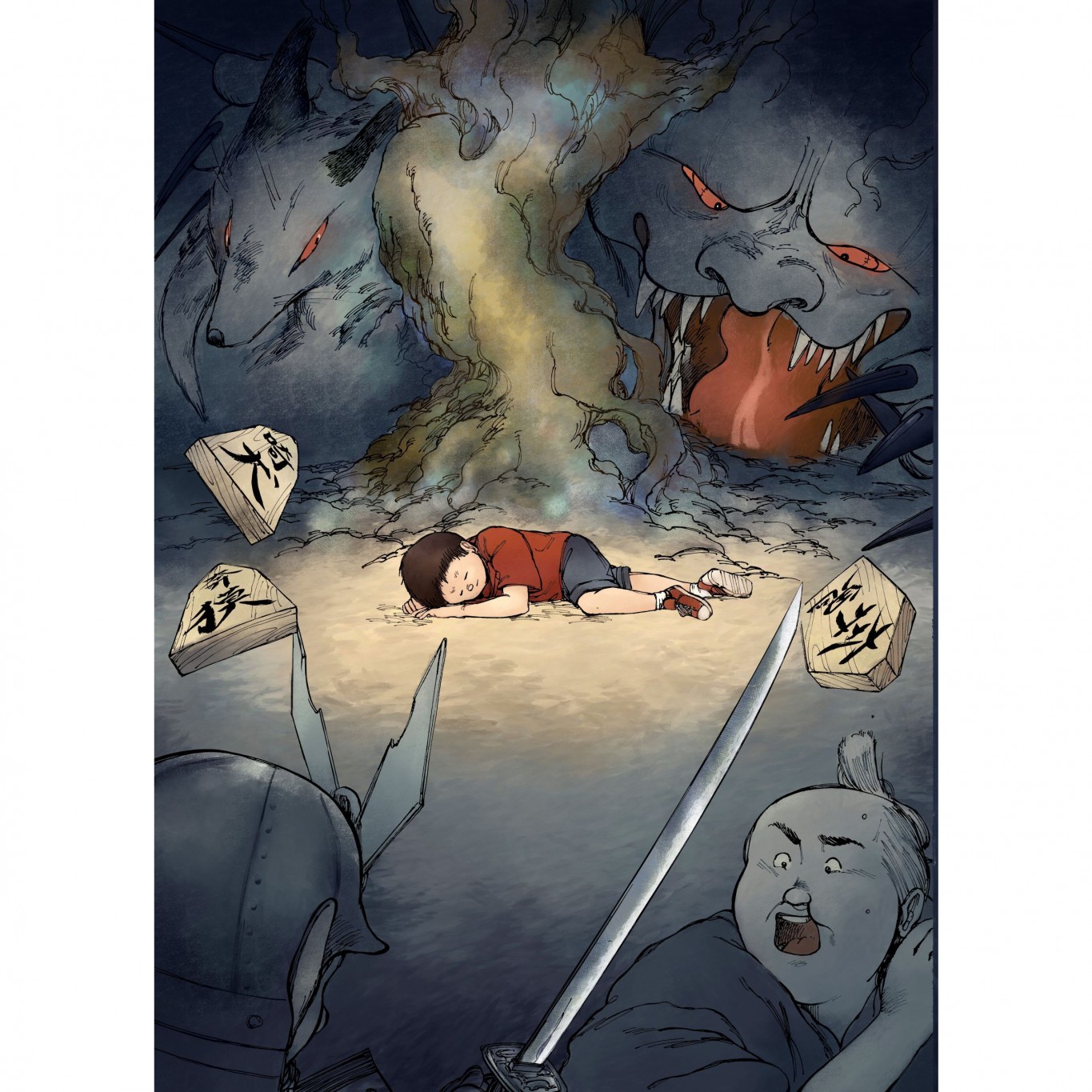 Le petit Yuta est curieux : ses songes le poussent à aller dans la forêt et sont identiques à ceux de son père. Yuta est fort et brave. Ne croyant pas à la malédiction ou la facétie d’un esprit maléfique, il s’arme de son épée en plastique et de son chien, direction la forêt ! Mais sur place, une étrange torpeur l’envahit, le pousse à s’allonger, à s’endormir… Ce n’est que le début du parcours, d’un chemin pavé de vies et d’histoires…