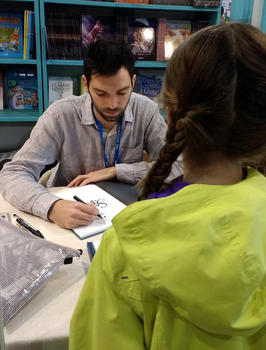 Je misais sur un public masculin mais avec le petit chien l’album plaît aussi aux petites filles. A chaque séance de dédicaces, les filles veulent un dessin de Tomcrouz.