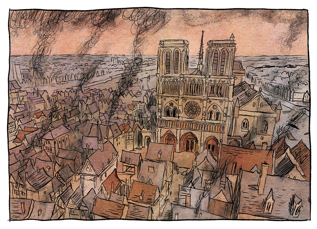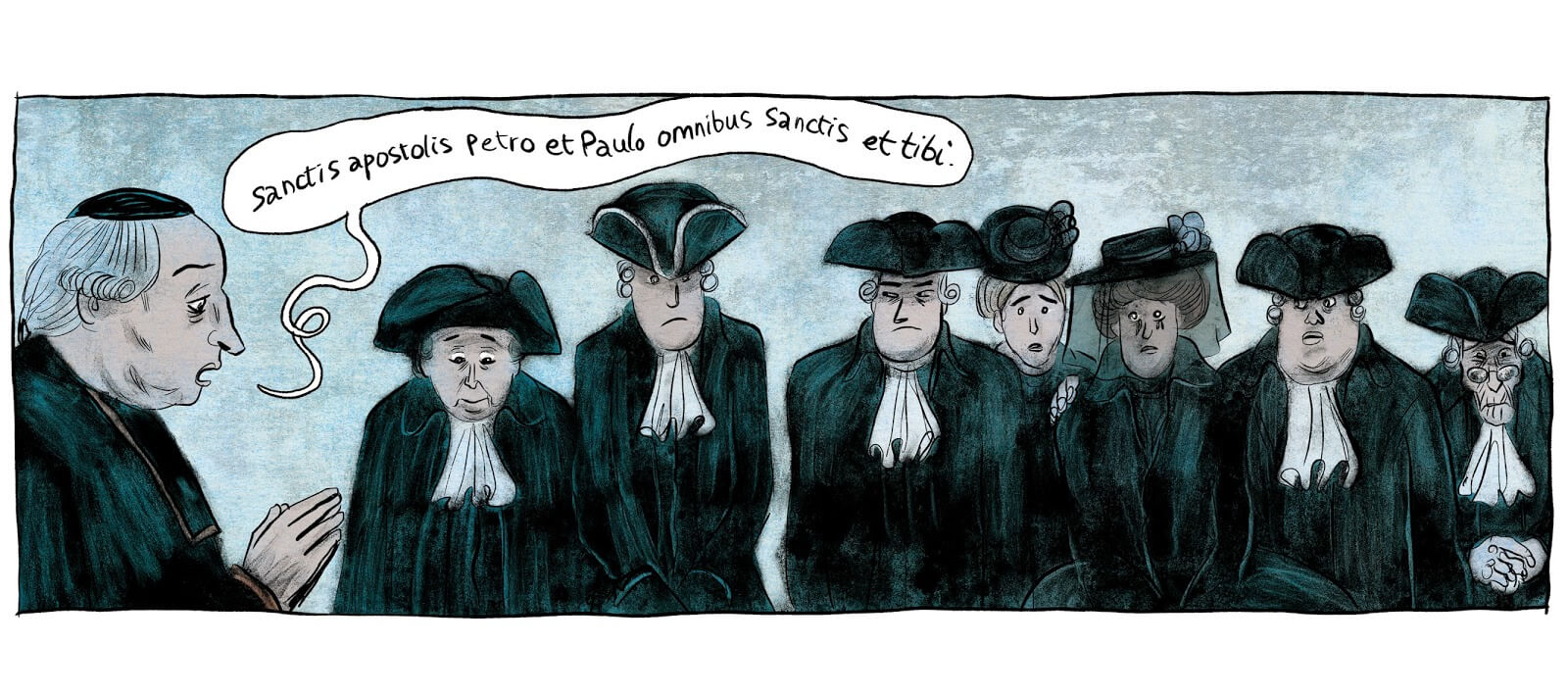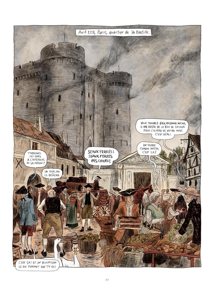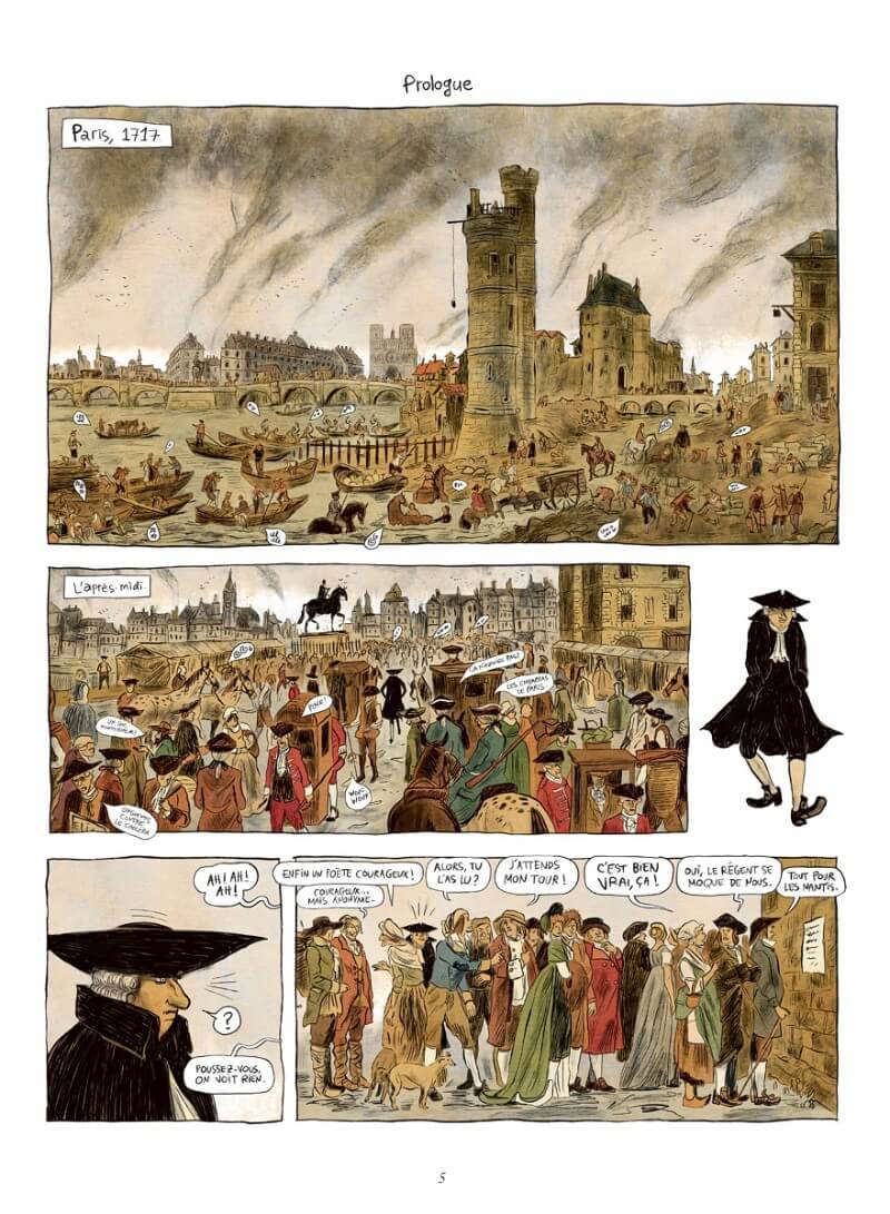 J’aime vraiment changer d’univers d’une série à l’autre parce que je ne veux pas dessiner éternellement la même chose. J’aime tout changer, y compris les procédés. Le fait d’être dans le XVIIIe, dans un « film à costumes », ça m’a énormément plu. J’aime bien trouver des « niches » et la peinture française de cette période représente peu Paris et la vie quotidienne. C’est plutôt une peinture soit religieuse, soit de portraits de nobles. Nous n’avons pas ce qui se fait en Hollande à ce moment-là où l’on peut voir des scènes de rues.