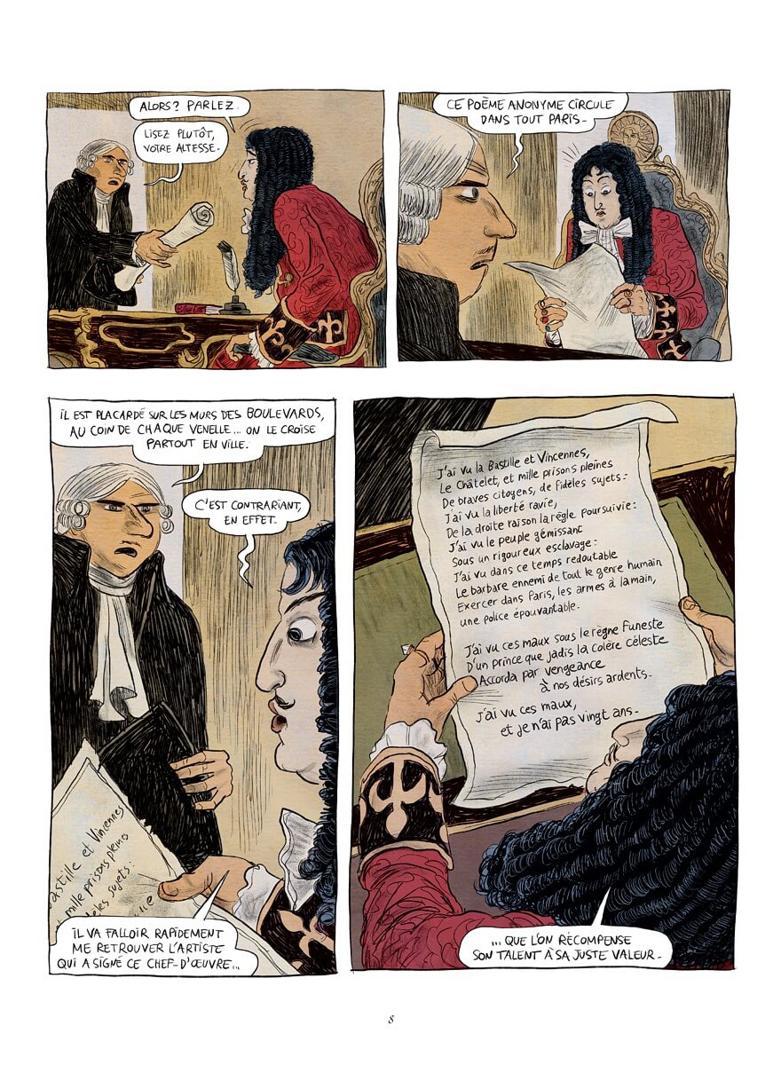 J’aime les personnages complexes et lui en est un. Ils sont traversés par des envies ou des pulsions contradictoires. Voltaire est nettement en contradiction avec lui-même : il veut réussir dans un état violent avec une hiérarchie, alors qu’il n’a pas la bonne naissance ni la bonne fortune pour cela. Il est surtout très hostile à la manière dont la politique est menée et comment l’Etat est géré.