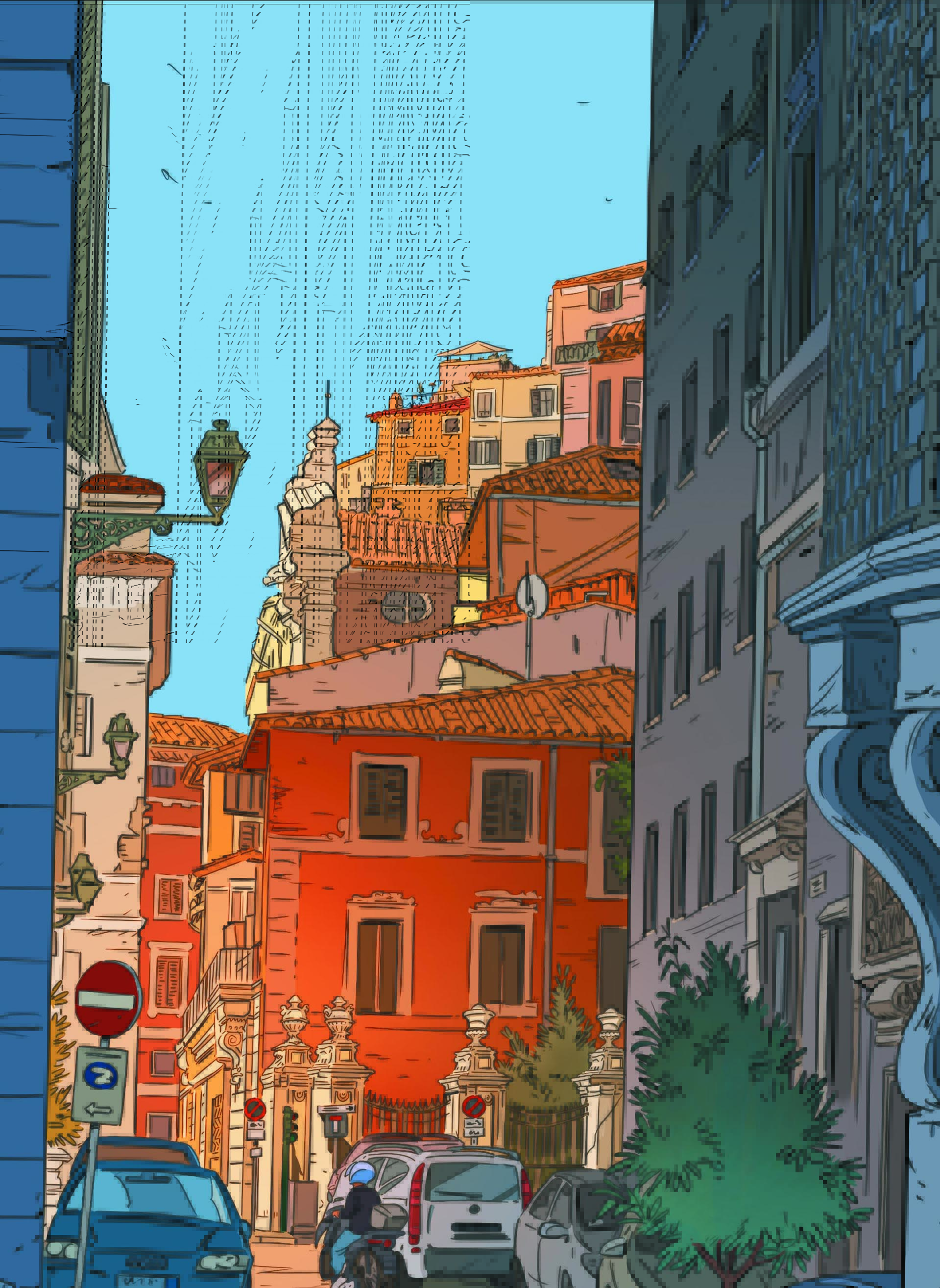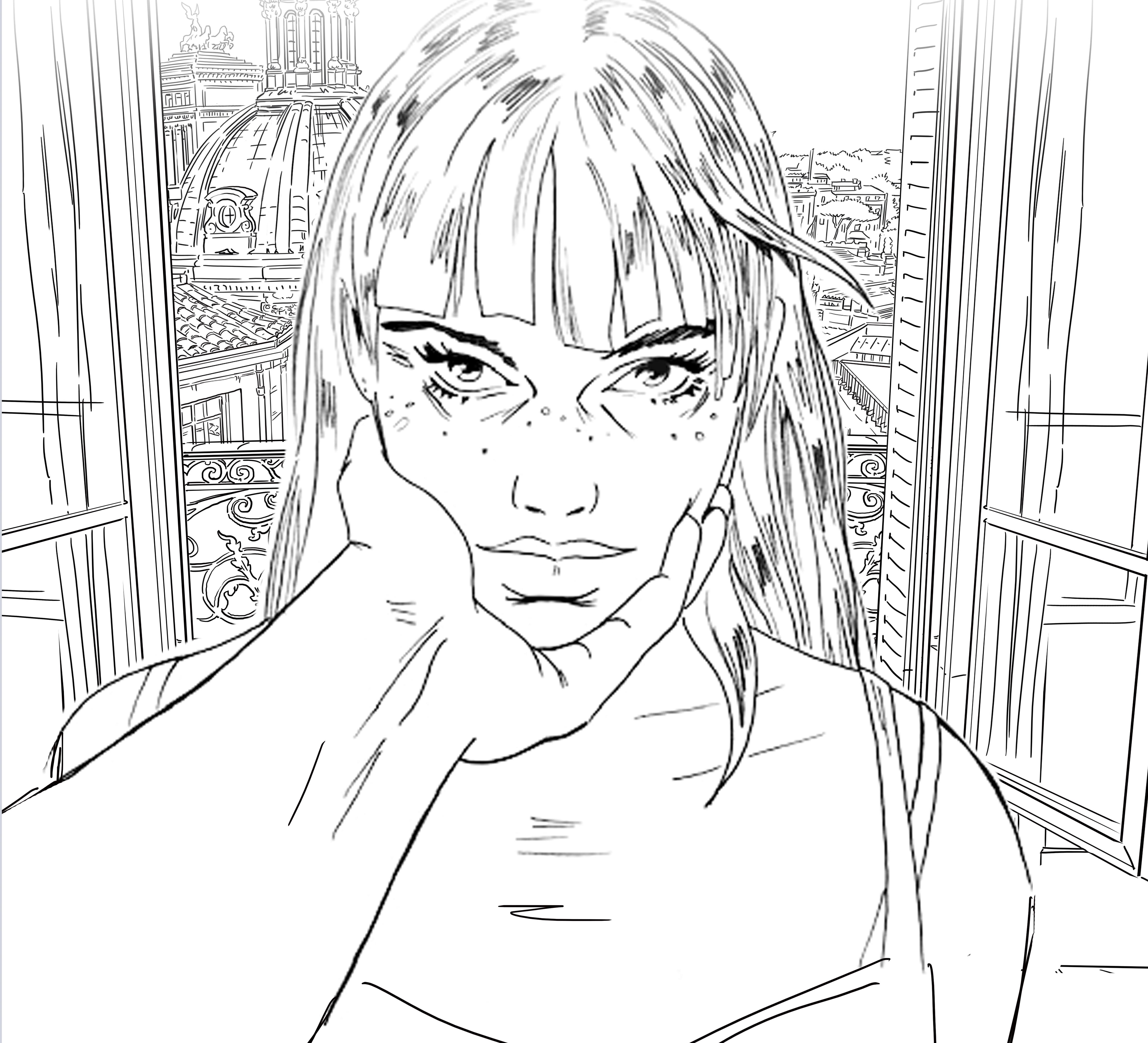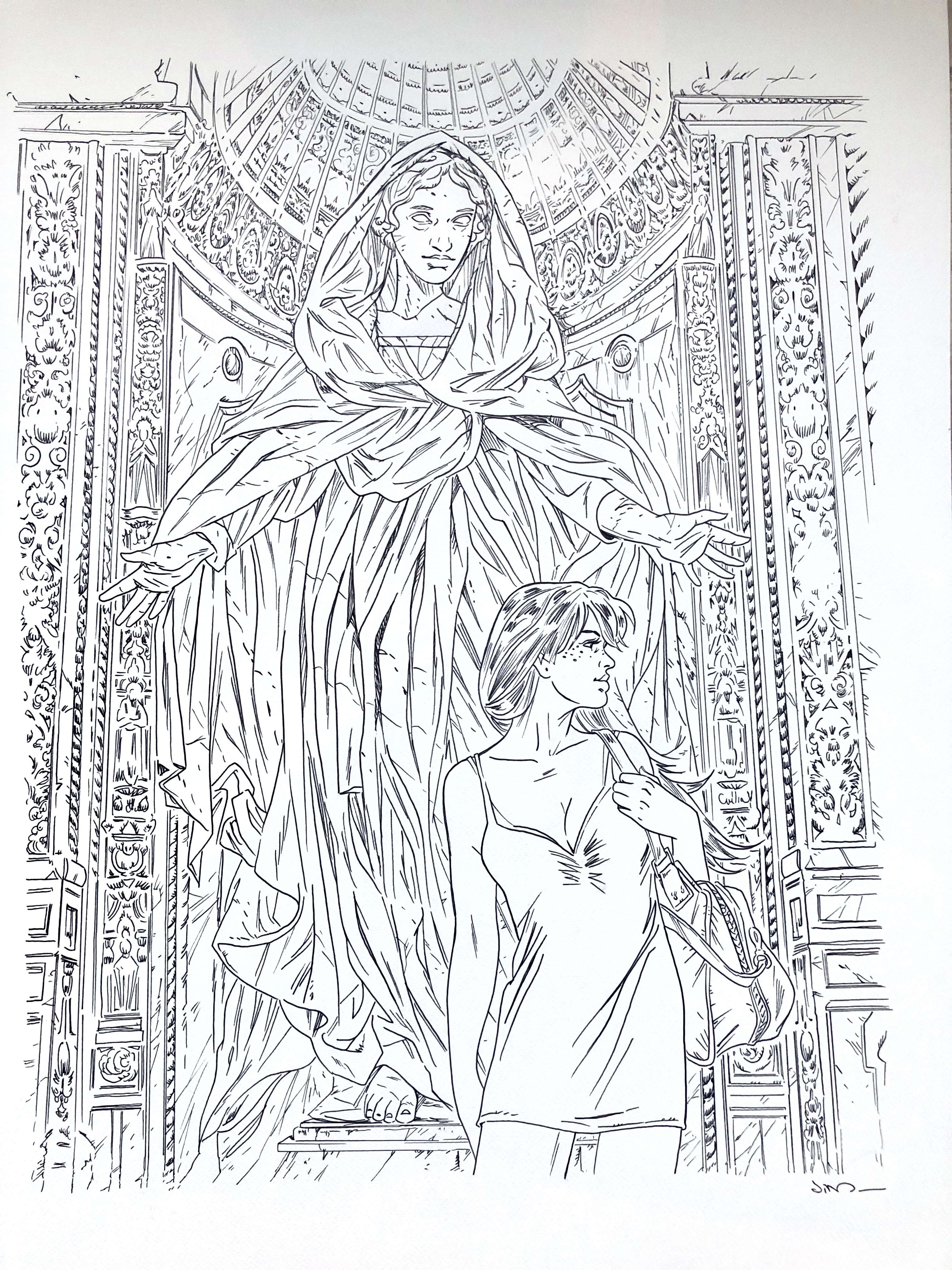 Alors, je lui demande de ce pas. Le premier mot que j’entends est dans un éclat de rire : « délivrance !». Pour elle c’est dix ans de travail, quatre albums d’une centaine de planches chacun. Le travail sur Une nuit à Rome imprègne son parcours, il définit un peu son registre. Il y a un avant et un après pour elle avec cette série.