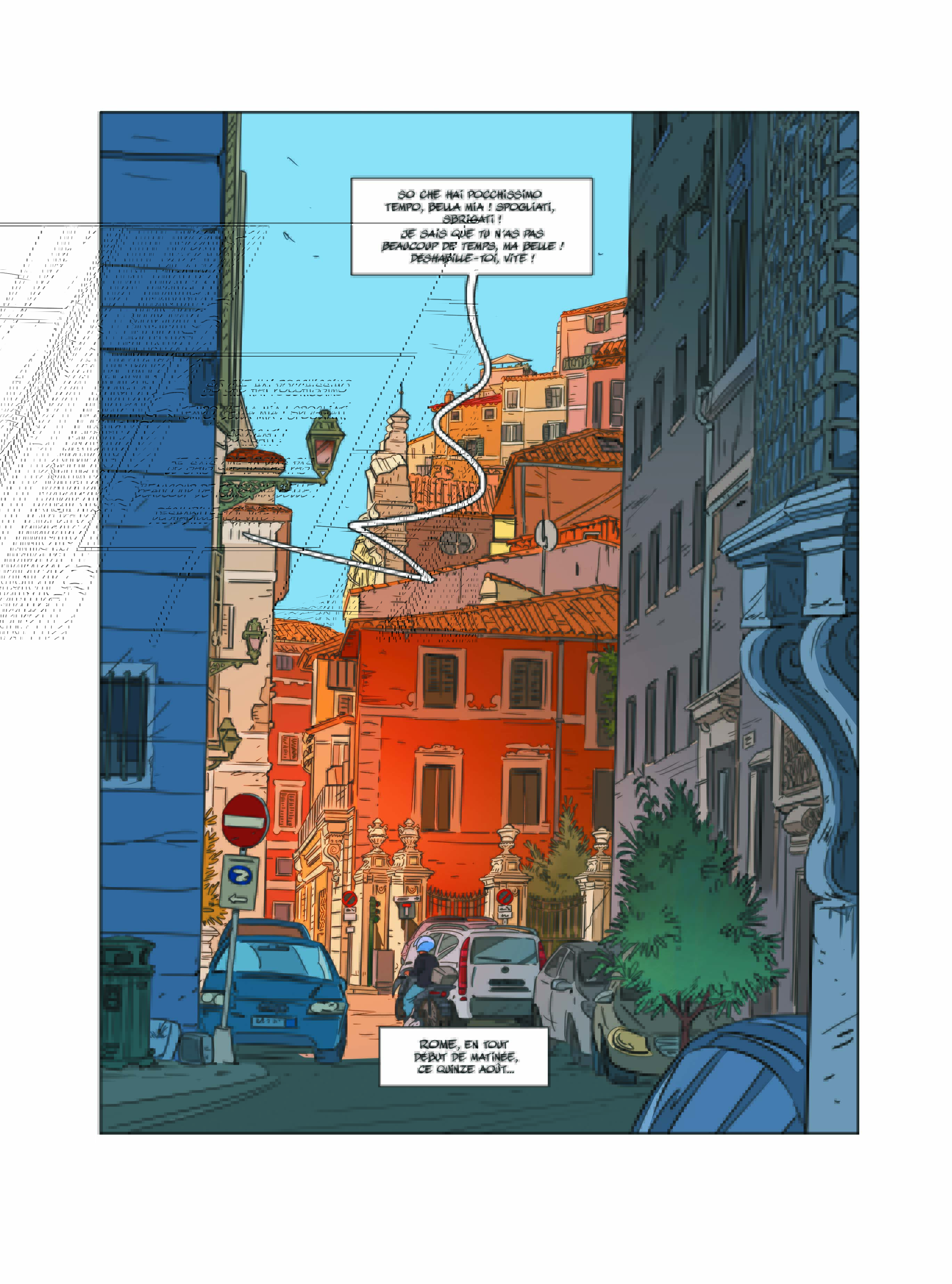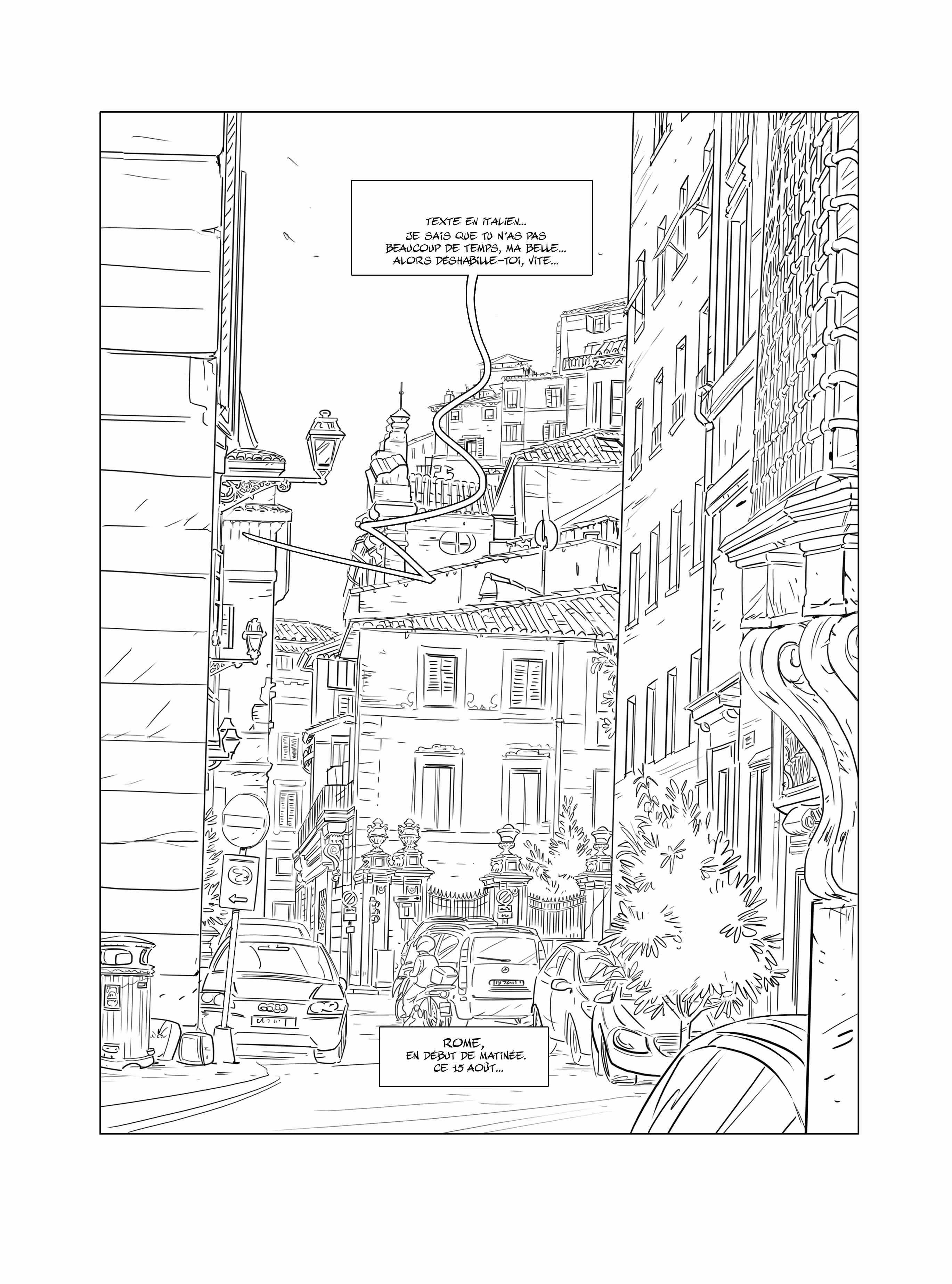 Nous avons demandé à Jim de nous commenter la planche qui lui a donné le plus d’émotion pour ce dernier tome d’Une Nuit à Rome. La voici :