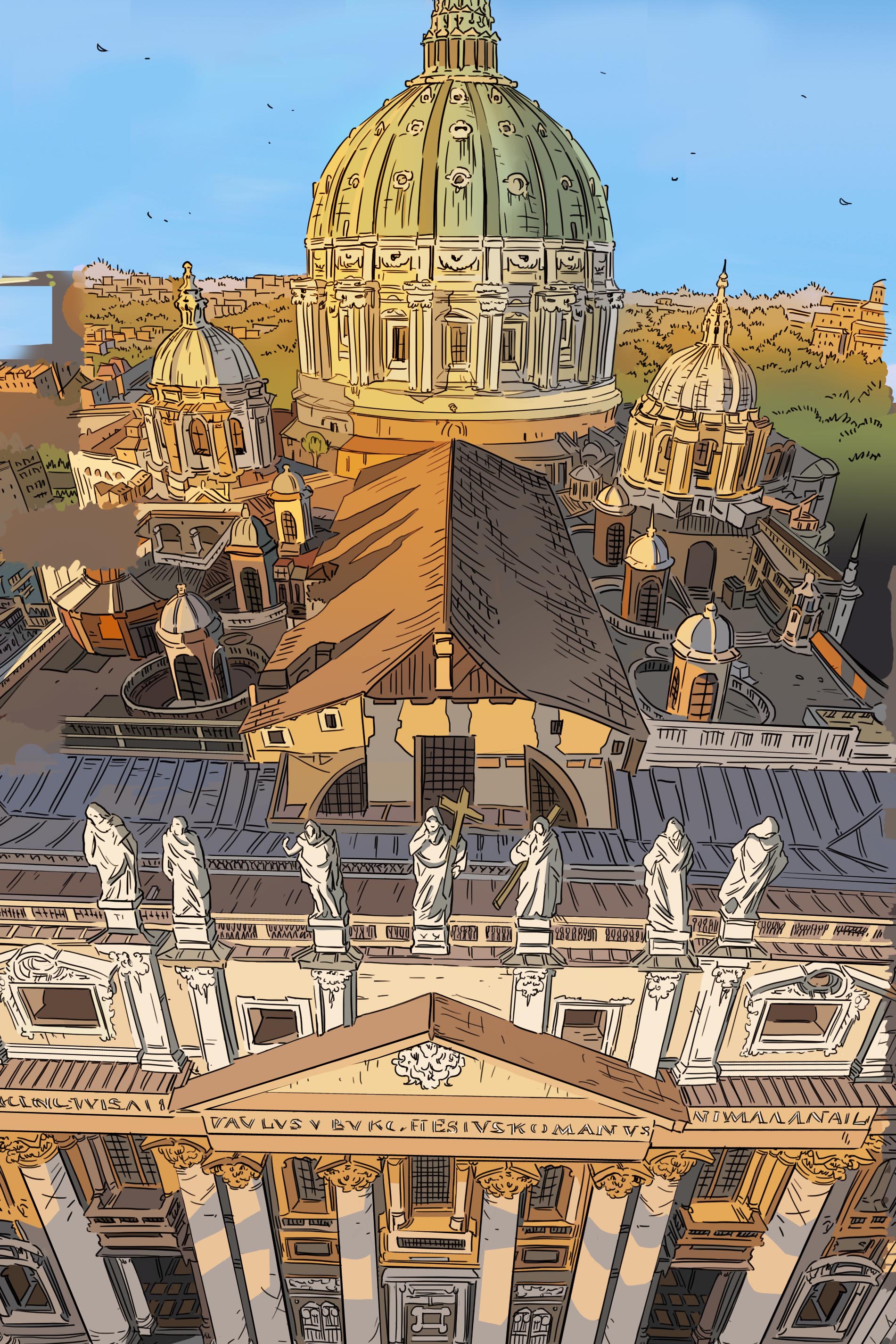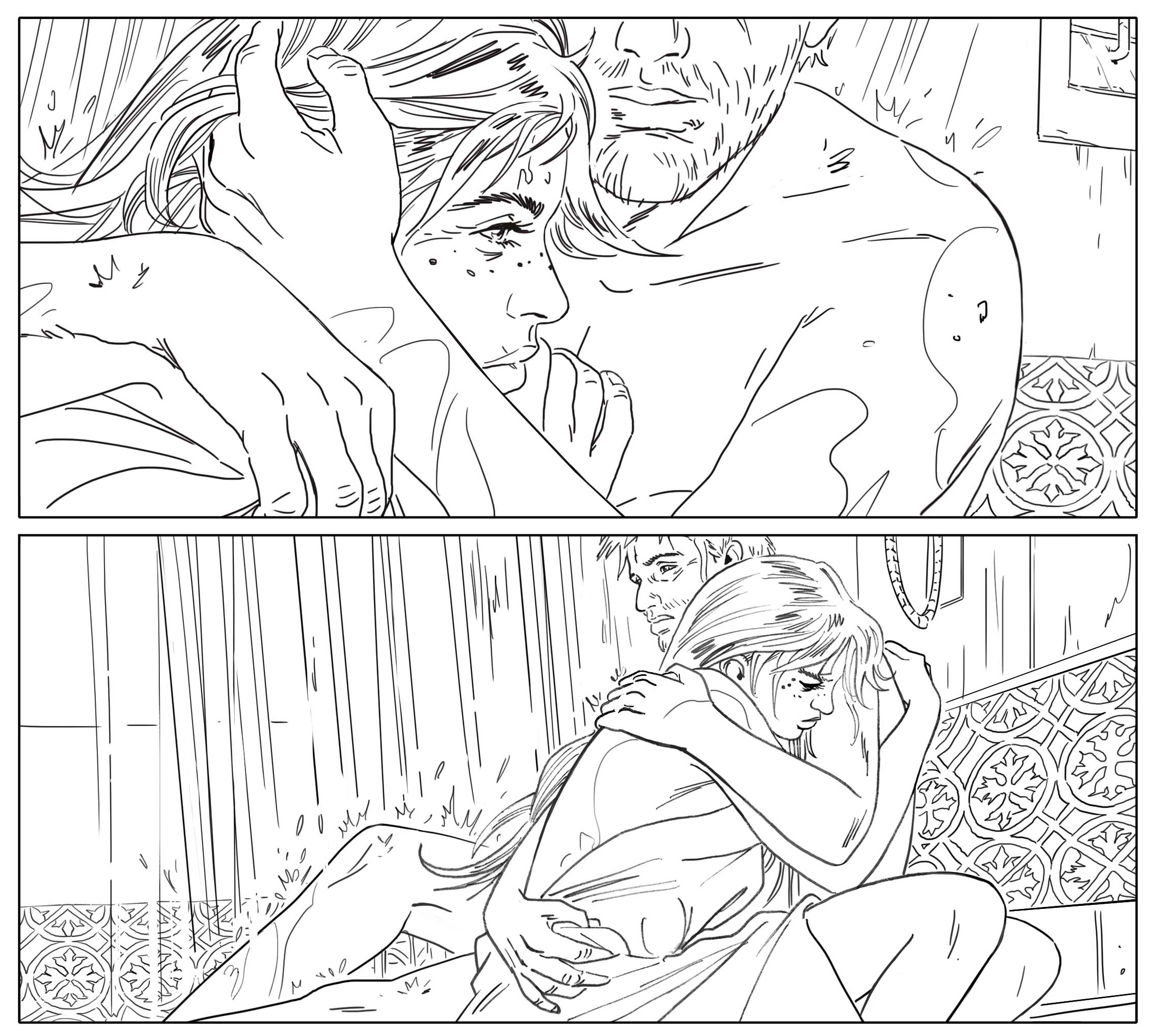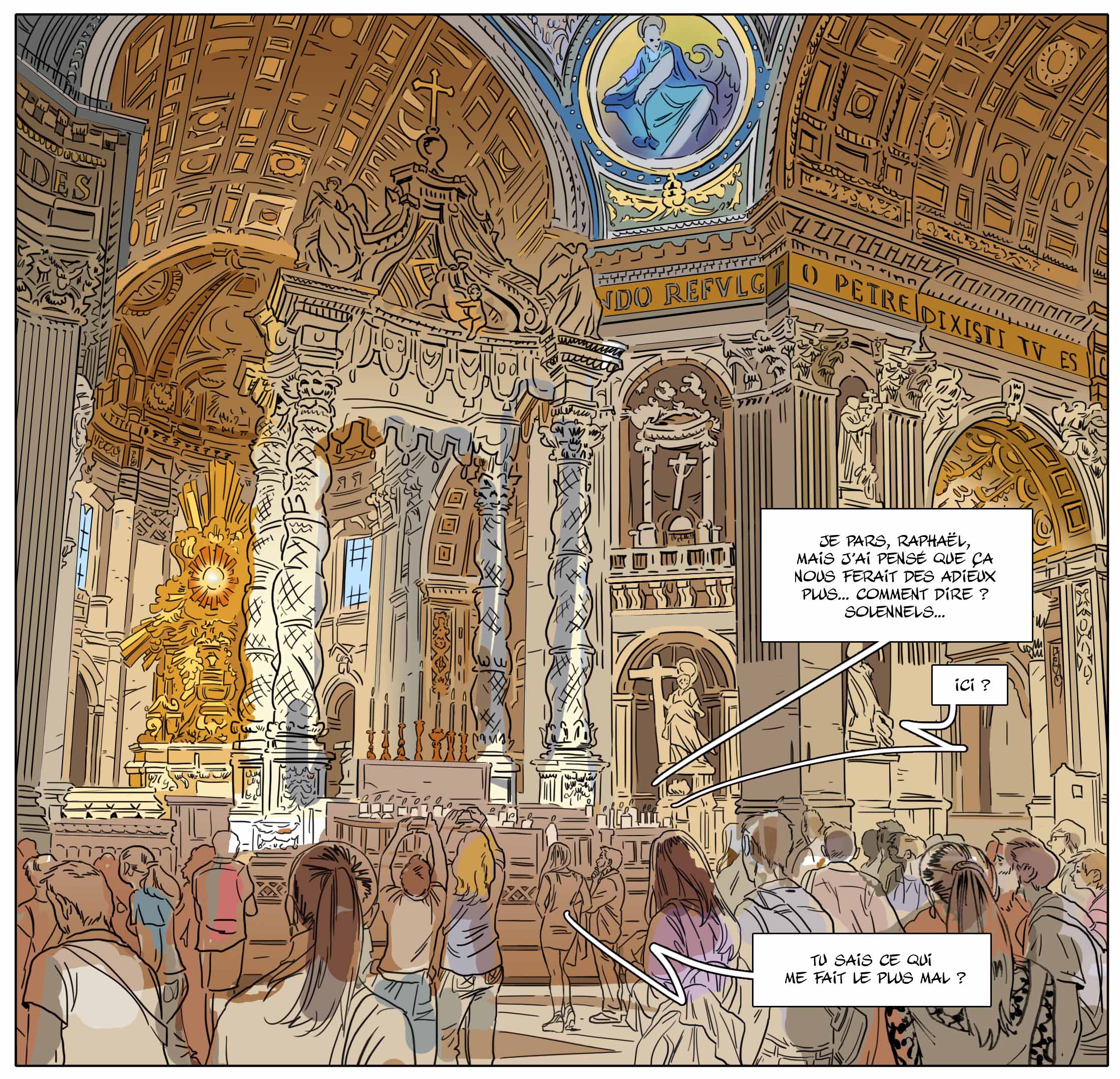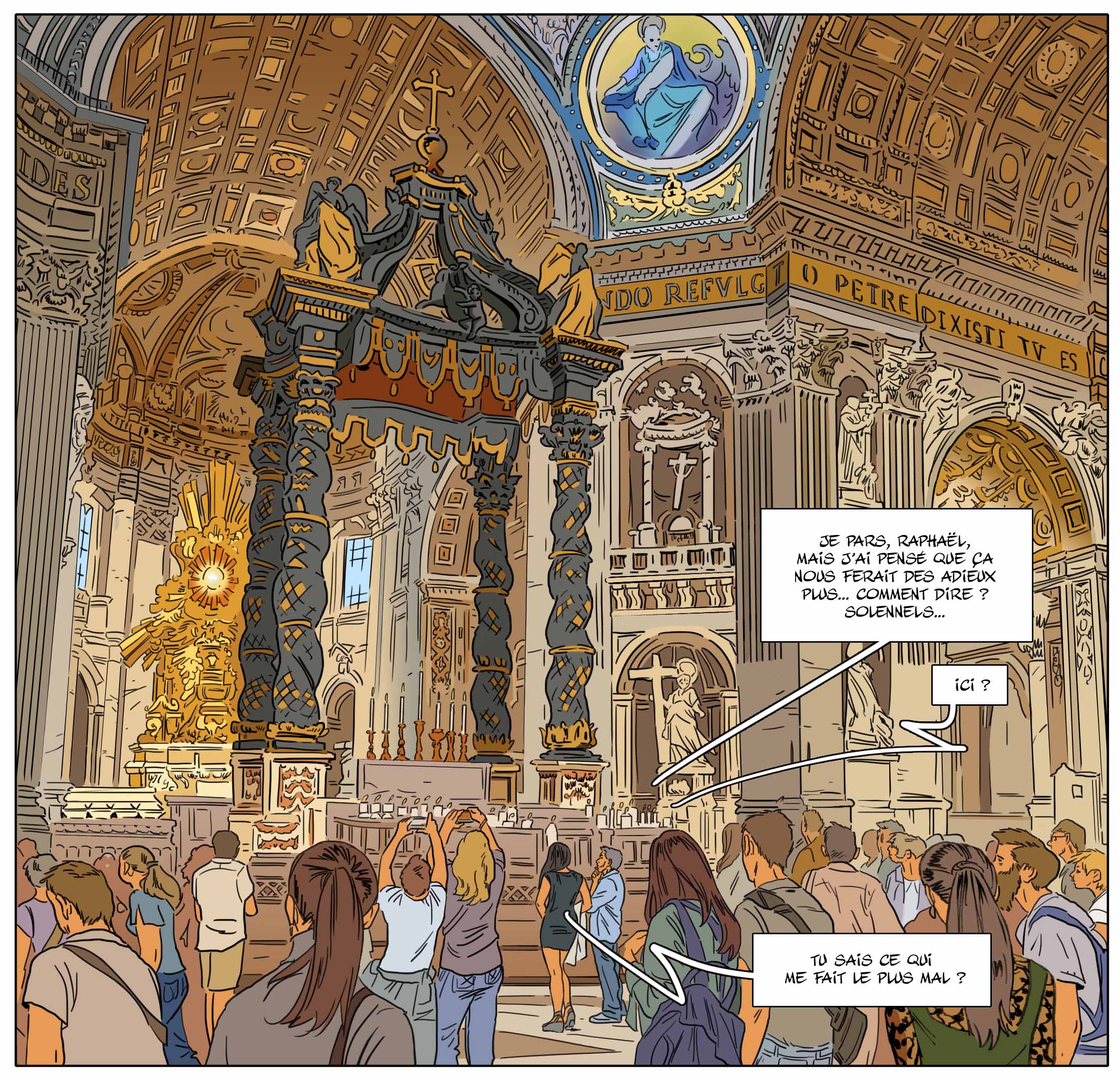 À trois mois de sa sortie, tu as déjà choisi et présenté la couverture de l’édition classique. En martelant l’importance du choix des bonnes nuances de couleur. L’occasion de mettre une nouvelle fois en valeur le travail de ton épouse et coloriste Delphine. Comment perçoit-elle la fin de Nuit à Rome ?
