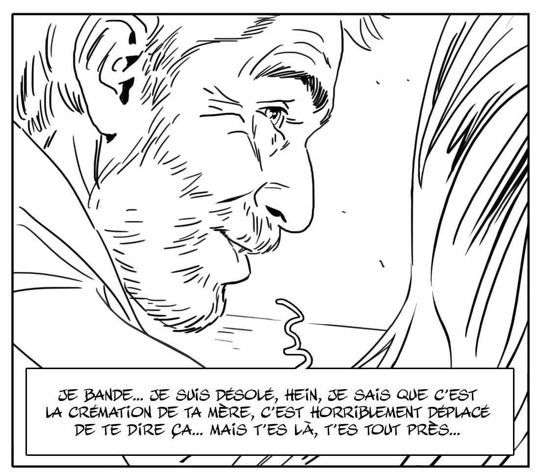 Conclure, non. Enfin, scénaristiquement, la fin ne m’a pas posé de souci. J’aime les fins. Les fins et les débuts. Les fins et les débuts c’est passionnant. Je passe ma vie à écrire des débuts, j’en ai plein mes tiroirs. Après, souvent ça se complique avec le milieu. Et si on ne trouve pas le milieu, on n’a pas souvent l’occasion de se questionner sur la fin. Il y a parfois des débuts qui viennent avec la fin, mais personnellement, je suis quelqu’un qui écrit des débuts. Et si ça me semble bon, j’essaie de continuer…