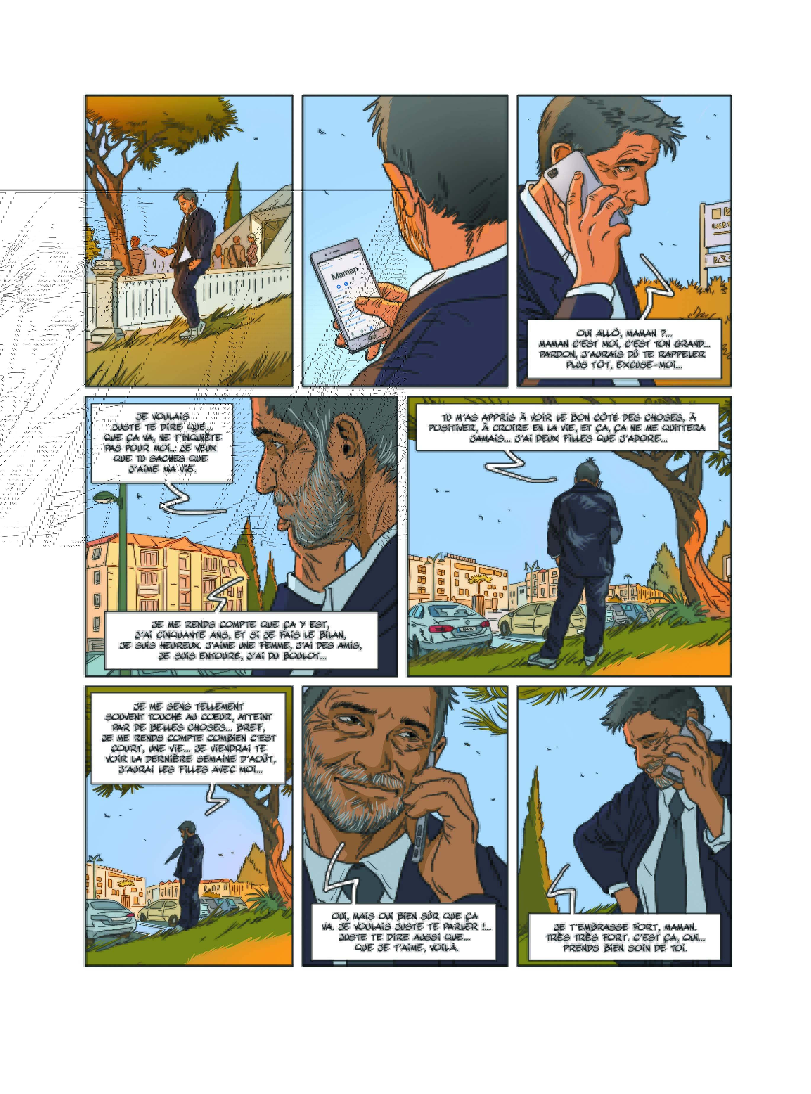 Un beau projet avec Laurent Bonneau, un autre avec Antonin Gallo dès que Détox est achevé. Nous avons envie de travailler ensemble avec Jean-Michel Ponzio aussi, j’ai écrit un scénario mais je n’en suis pas entièrement satisfait, je dois le retravailler… ou le jeter (rires). Et puis, j’ai envie de découper un album, de crobarder, sans forcément savoir qui dessinera, mais revenir au plaisir du page après page…