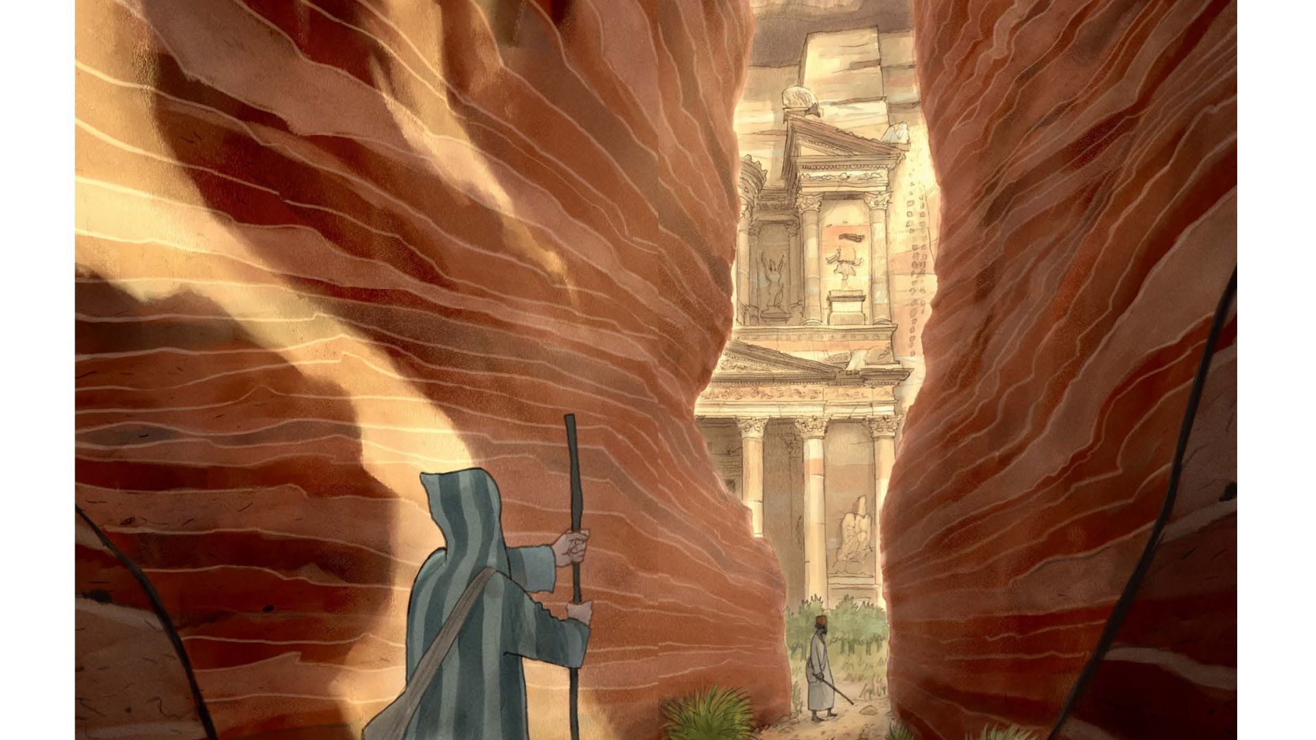 Je voulais que le lecteur puisse ressentir cet effet de surprise comme dans la réalité. Après un virage dans ce canyon, on découvre Pétra. Je n’ai pas pu aller sur place mais je l’ai visité de fond en comble avec Google Map.