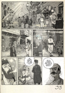 Avec le numérique, si je fais des erreurs, je peux tout de suite corriger. J’ai néanmoins essayé de garder les “accidents heureux” pour L’espion d’Orient. J’ai essayé de ne pas trop corriger mes erreurs afin de garder ce côté “jeté” comme dans le traditionnel.
