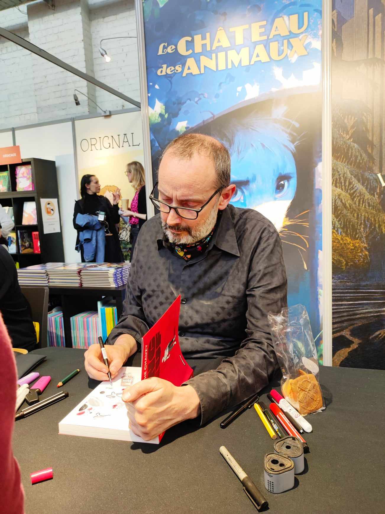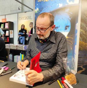 Entretien réalisé par Matthieu Morvan et Damien Canteau le samedi 6 avril 2024 à la Foire du livre de Bruxelles.