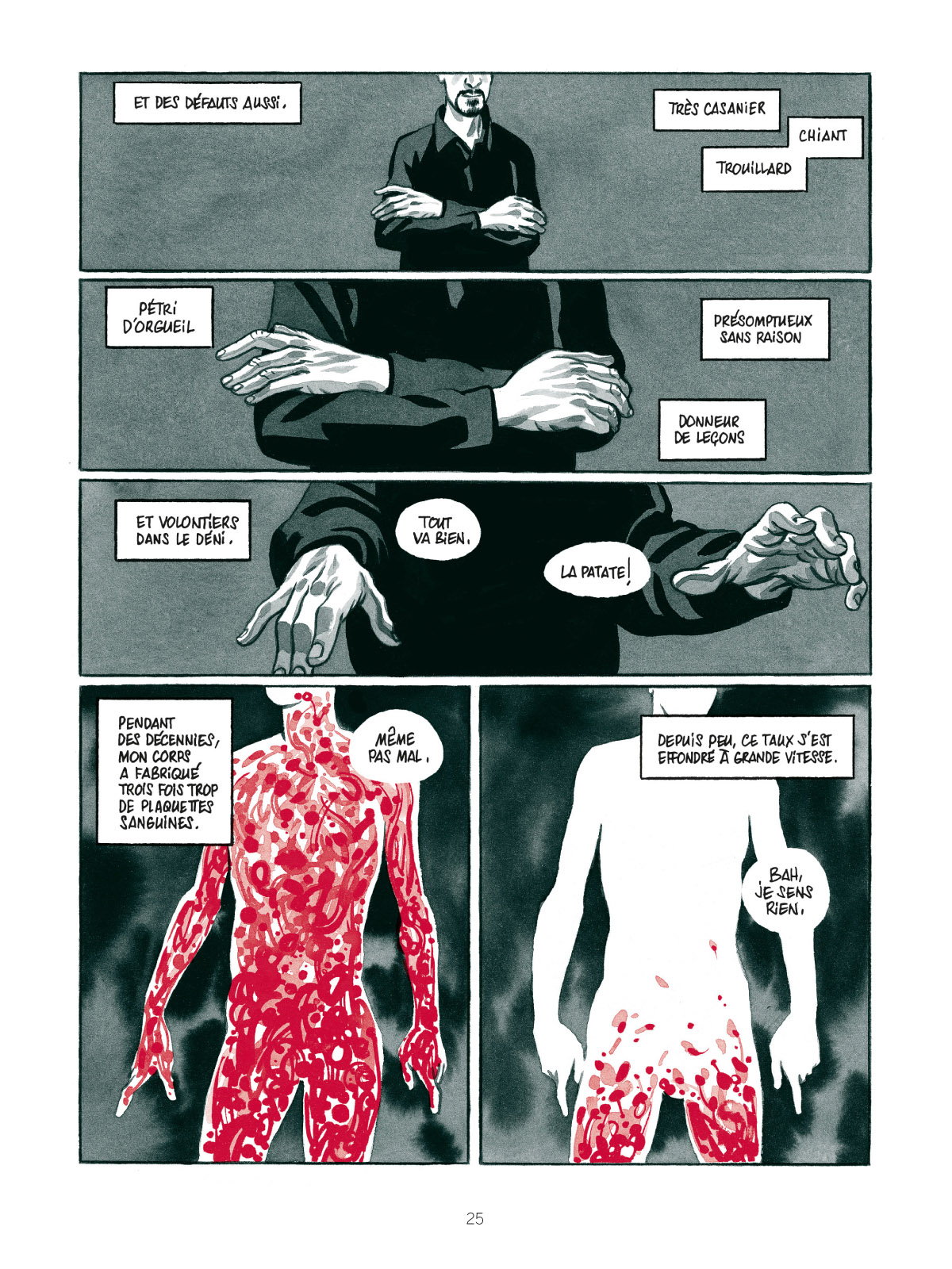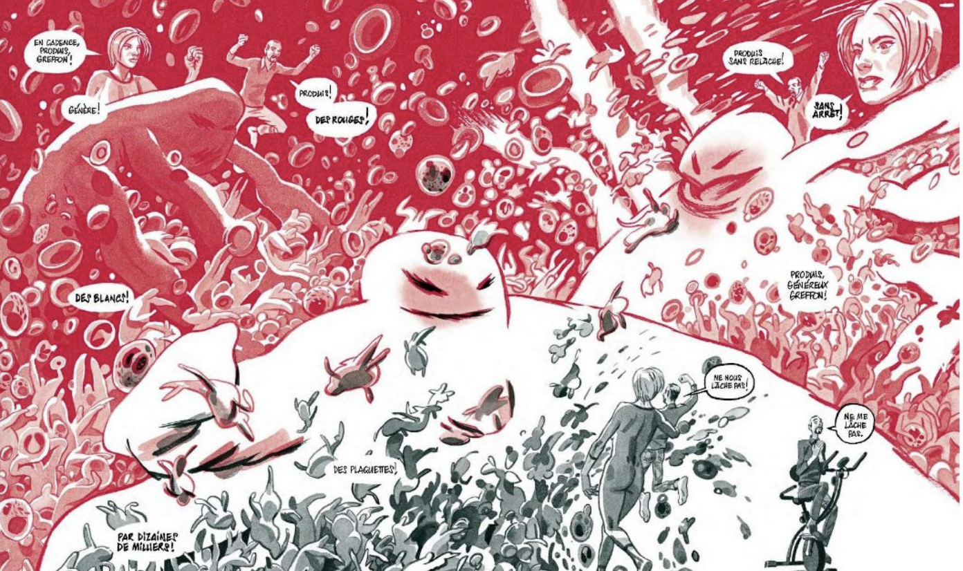 Au début, je n’avais même pas conscience de ce lien. Ça m’est venu en cours de bouquin qu’il y avait évidemment une logique entre ce qui se passait sur le papier avec un fluide qui séchait et puis ce qui arrivait à ma moelle osseuse.