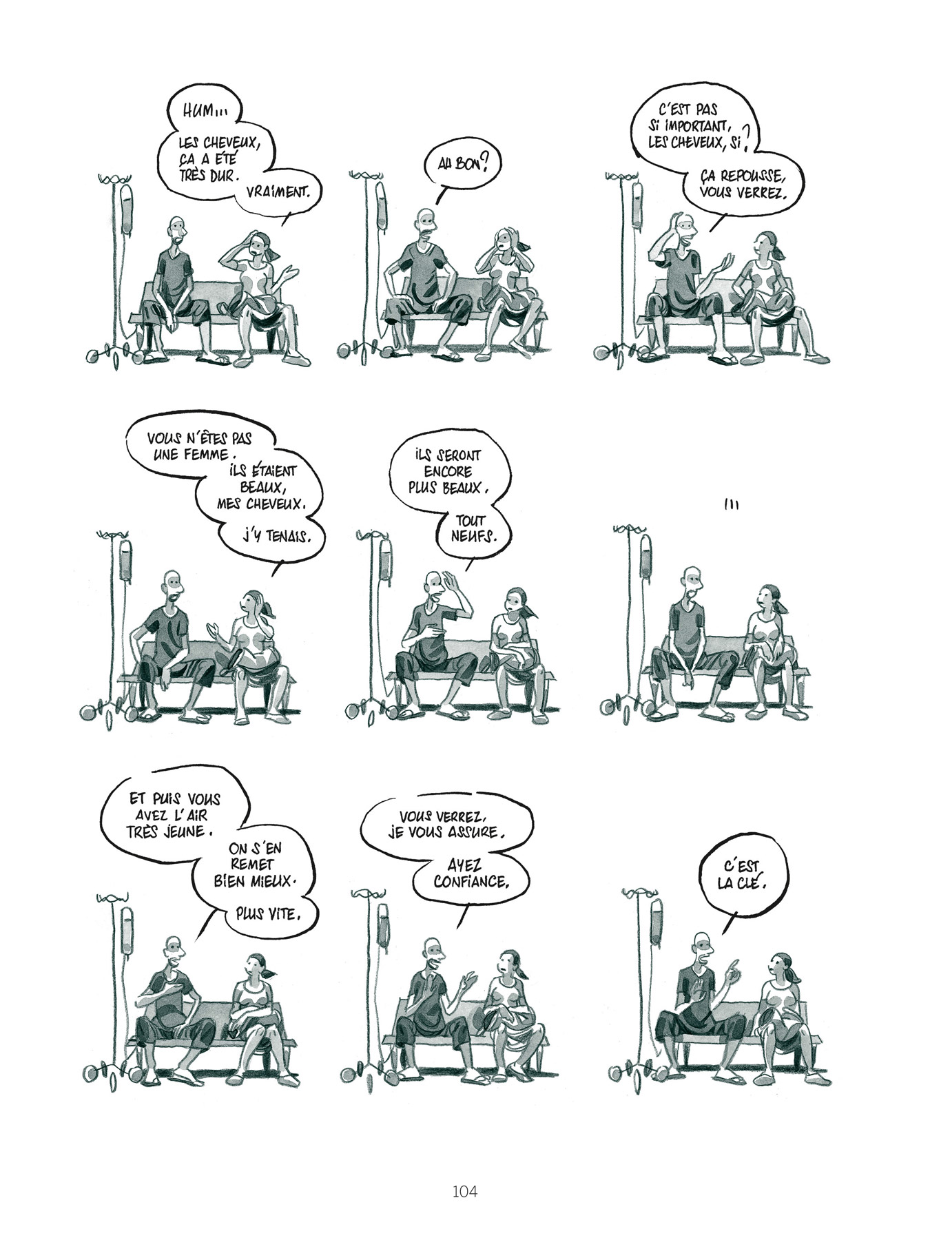 Je pense que si on fait un récit didactique, toute la question de la souffrance et de la douleur sont un peu exclues ou observées de manière clinique. Mais, ce n’est pas ce que je voulais. Mon point de vue, c’est celui qui a reçu la chimie, qui a eu des informations.