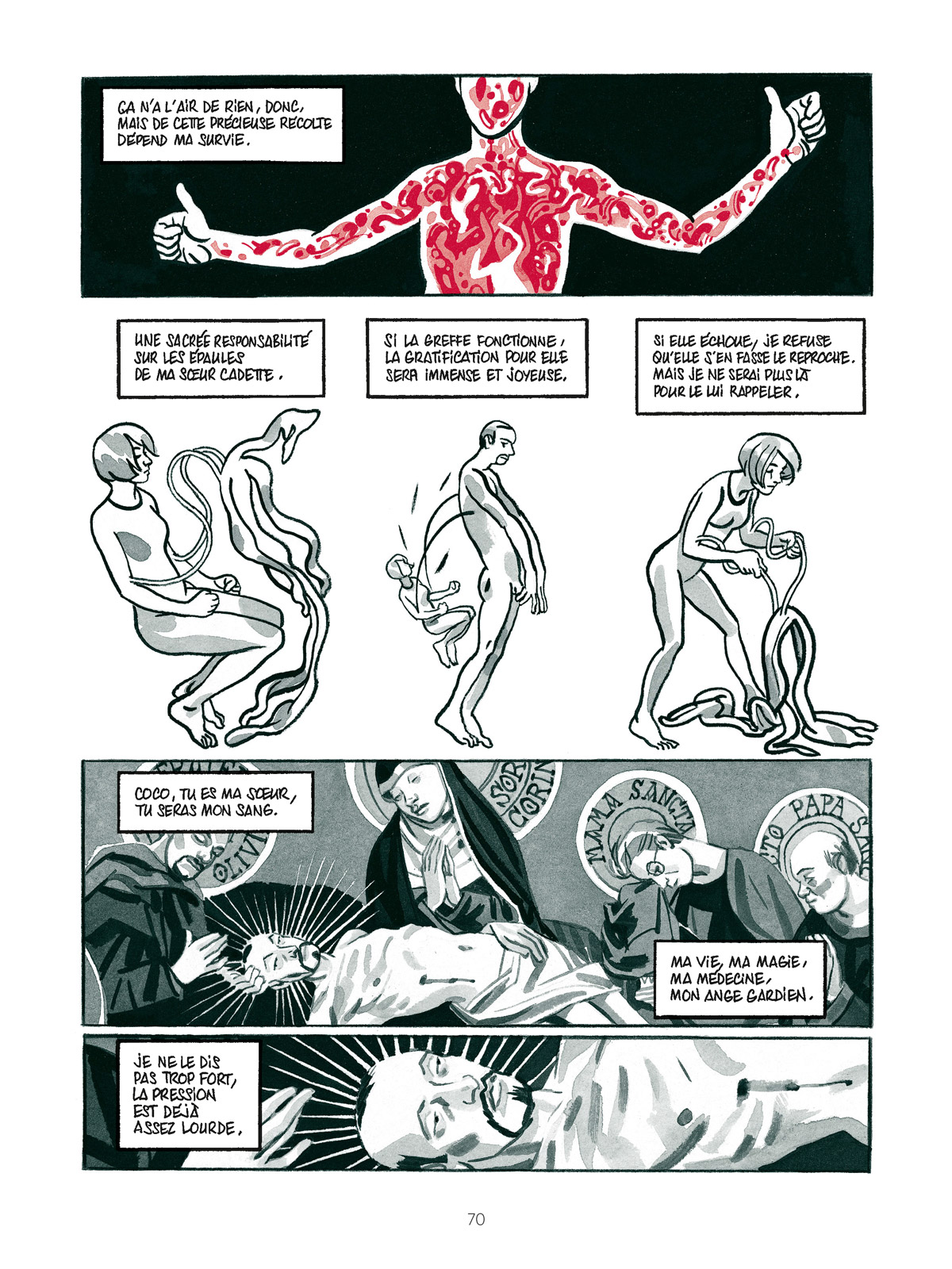 Mais à vrai dire, ça a même été l’un des enjeux d’une des opportunités créatives du bouquin. C’est-à dire y aller à fond et ne pas être pris de pudeur qui serait très mal placé dans ce genre de livre. Sans pour autant éviter la complaisance, mais montrer ce qui doit l’être.