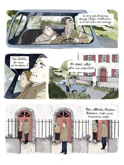 Je me suis éclatée à dessiner les photos, à essayer de retrouver leur texture. J’ai fait un travail graphique avec ces calques. Ils permettaient de montrer les photos des vraies personnes sans les afficher comme dans un album photo. Cela devait rester une fiction. Le calque permet ce côté fantomatique des personnages du passé. Je suis ravie du résultat.