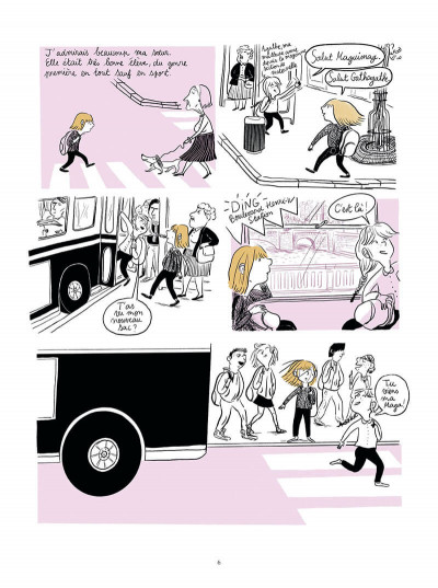 Résumé de l’éditeur : Magali a 11 ans. Elle aime les Beatles, dans la catégorie « passionnément » ou « à la folie ». Ce qu’elle aime moins, c’est l’école, surtout depuis qu’elle est au collège. Elle qui pensait être une élève comme les autres éprouve soudainement une peur panique à l’idée d’aller au collège. Telle une « Alice au pays des merveilles », elle se réfugie alors dans l’univers parallèle des Beatles nourri de leur musique et de couleurs éclatantes. Une bande dessinée autobiographique, sensible et drôle, en dépit de la gravité du sujet, la phobie scolaire.