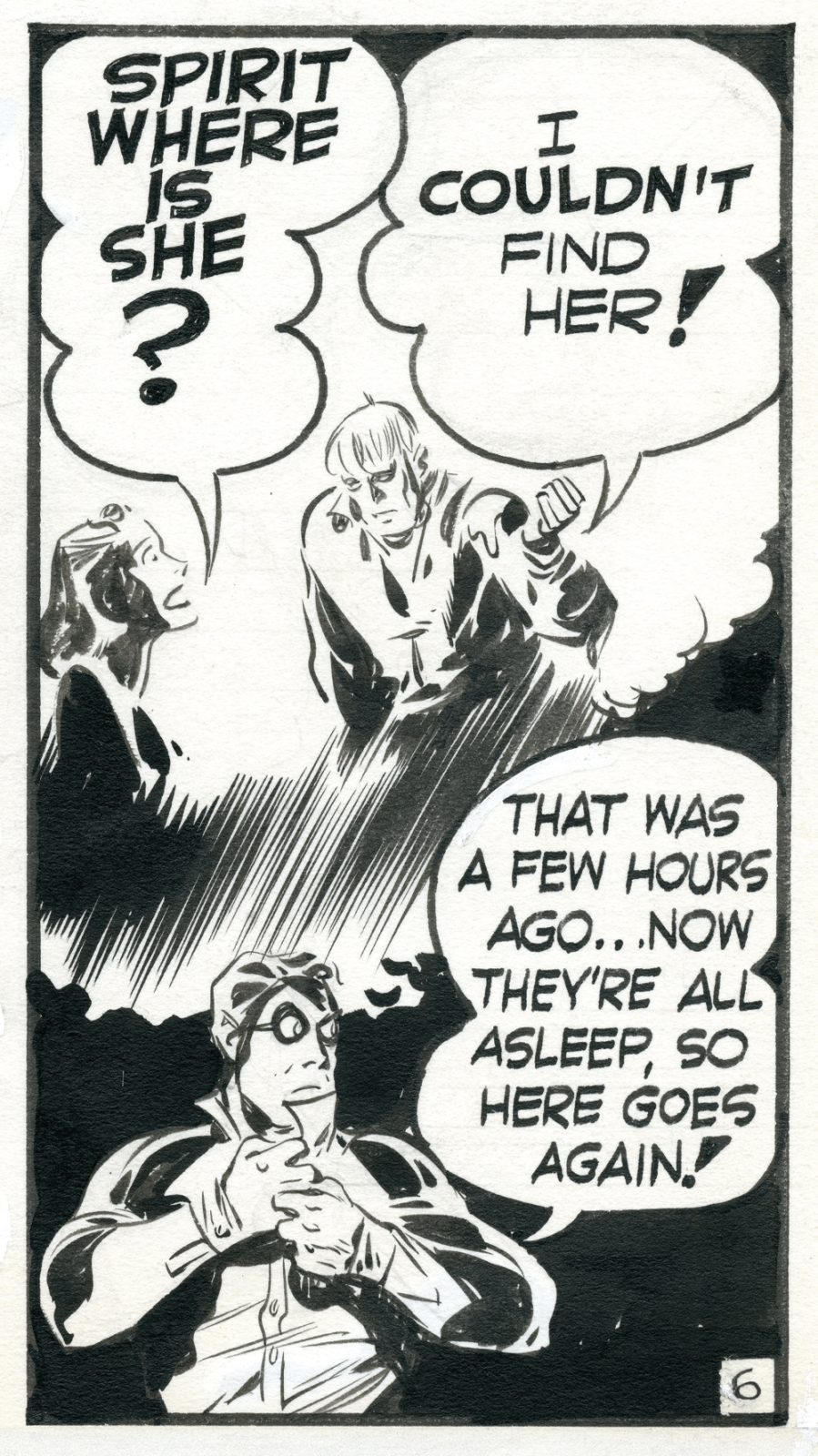 Will Eisner revend pourtant ses parts de l’entreprise en 1940, et se lance dans l’aventure d’une bande hebdomadaire pour les journaux. Il imagine alors une série policière d’un genre nouveau : The Spirit. Justicier masqué, Denny Colt, alias le Spirit, est un jeune détective qui pourchasse les bandits dans les bas-fonds de Central City, ville dans laquelle il est aisé de reconnaître New York. Malfrats patibulaires, pin-ups vénales et dangereuses, Eisner joue de tous les codes du genre hard-boiled, mais s’oriente très vite vers un second degré qui lui permet toutes les audaces visuelles et narratives. Ses références sont O’Henry, Maupassant, mais aussi Orson Welles, Howard Hawks et Fritz Lang. Le succès est grand. Eisner laisse pourtant sa création à ses assistants en 1942 et s’enrôle dans l’armée US pour combattre l’hitlérisme. Il se sert alors de ses talents de graphiste et de narrateur pour créer deux magazines qui vont être plébiscités par les troupes autant que par la hiérarchie militaire. Rendu à la vie civile en 1945, il retrouve son héros et inaugure la meilleure période de la série, un véritable feu d’artifice créatif. Il abandonne pourtant The Spirit en 1952 et, fort de son expérience militaire, fonde American Visuals Corporation, qui se sert du dessin et de la bande dessinée à des fins de communication institutionnelle et publicitaire.