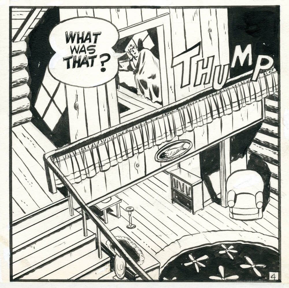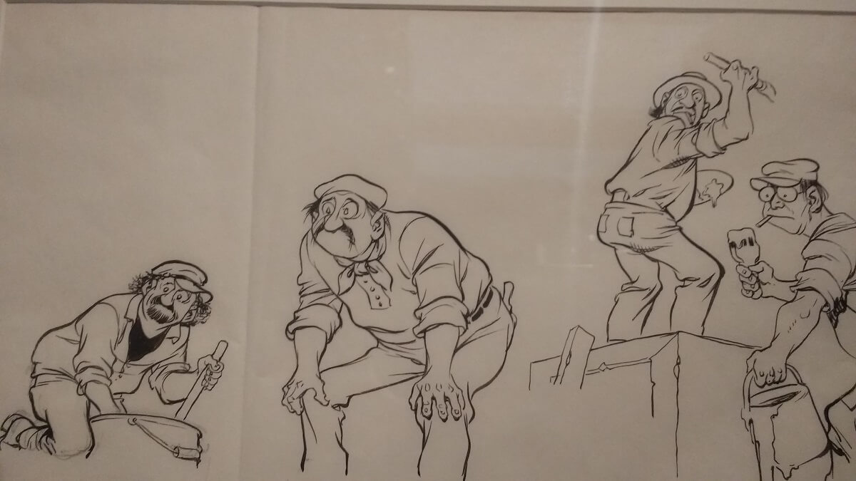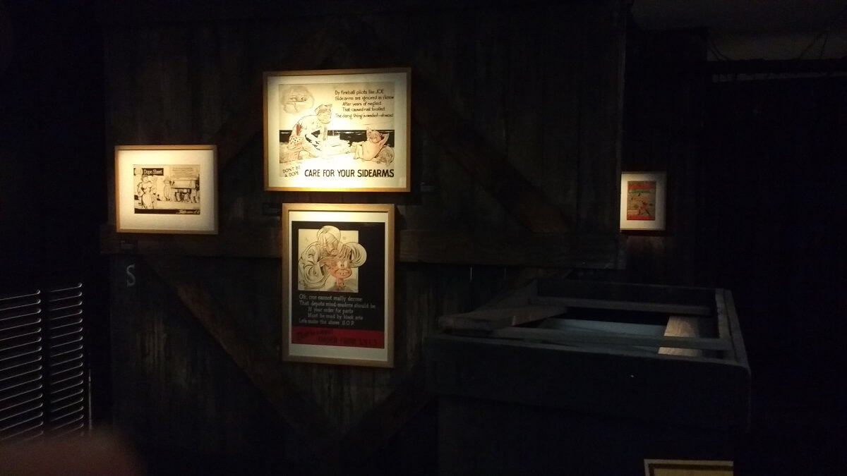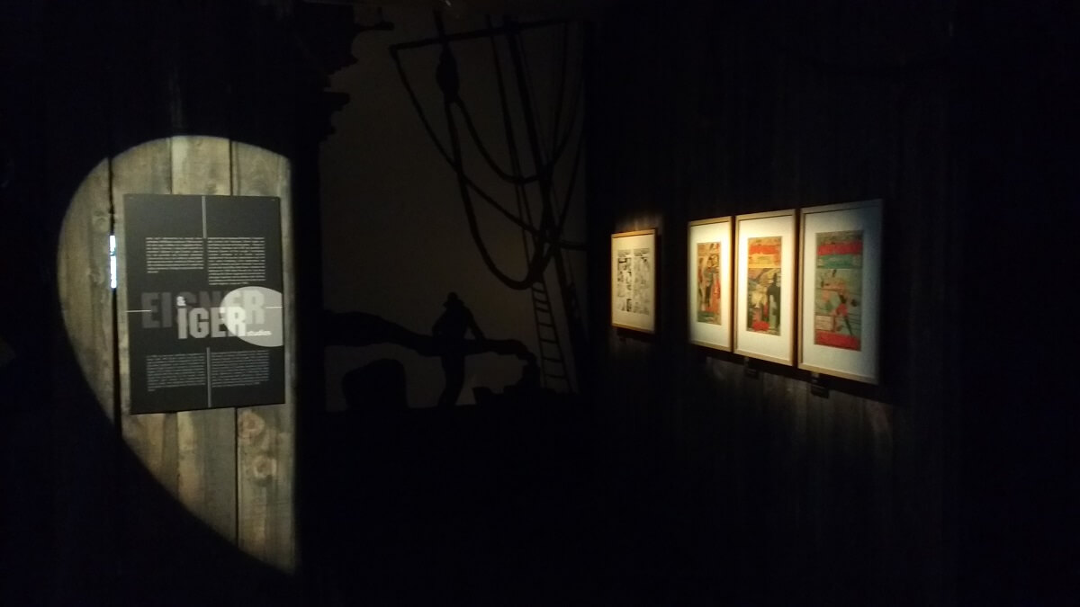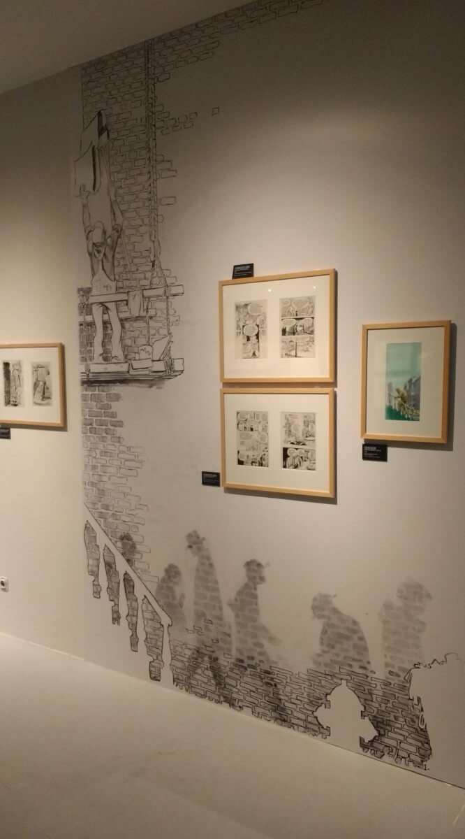 Ce qui frappe le visiteur lorsqu’il entre dans l’exposition Will Eisner, c’est la qualité et le soin apporté à la scénographie mise en scène par l’Atelier Lucie Lom. Il faut souligner que le commissaire d’exposition, Jean-Pierre Mercier est un des très grands spécialistes du monde du 9e art et qu’il a voulu mettre en lumière la magnifique œuvre du maître américain. Ainsi, des caisses énormes sont entreposées les unes sur les autres pour évoquer les buildings de Central City. Dessus ont été peintes de gigantesques illustrations du Spirit. Les planches originales couvrent les murs agrémentés d’ombres mais aussi les fameuses caisses en bois. Un scène de crime est reconstituée au début de la visite.