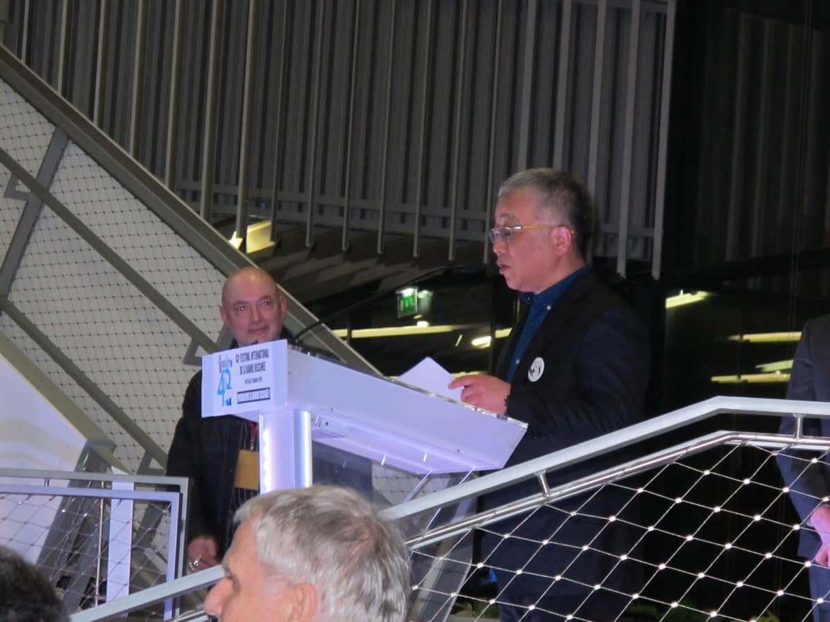 Après une salve d’applaudissements nourris, Hermann a remercié les nombreux auteurs qui ont voté pour lui, ainsi que Francis Groux, dont il a salué l’investissement dans le Festival. Il fut l’un des premiers auteurs à fouler les rues de la cité angoumoisine.