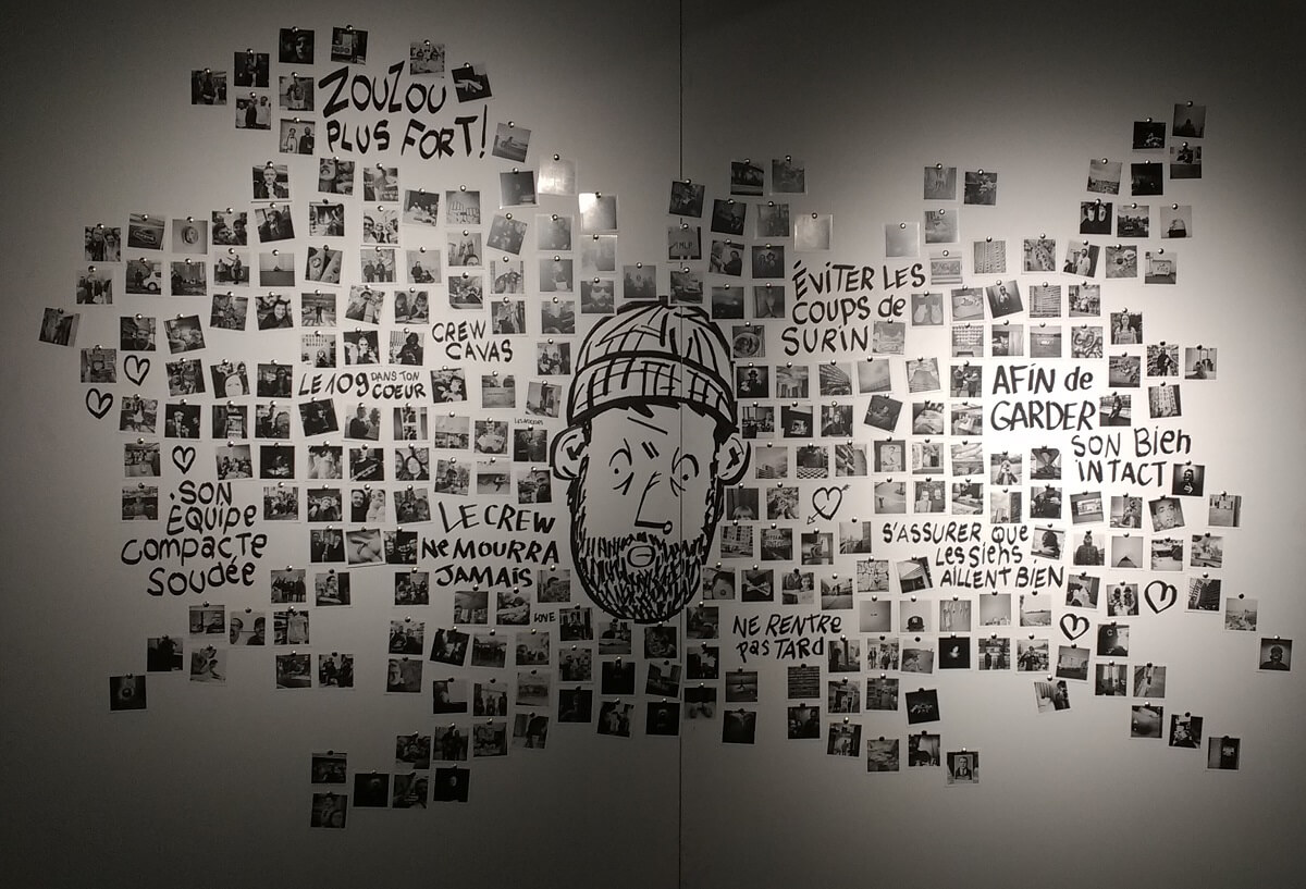 Un panneau à l’entrée rassemble toute sa team, sa crew comme un papillon qui déploie ses deux ailes pour s’envoler. Une base solide avec qui on irait bien boire un verre !