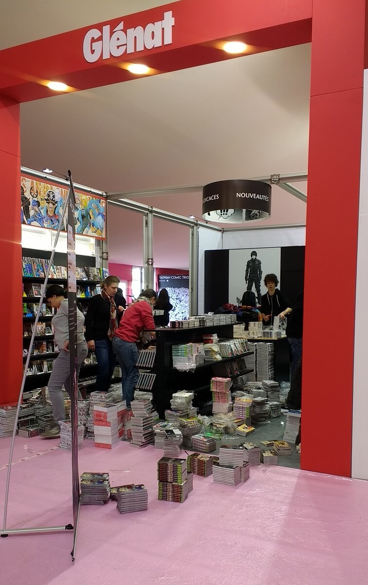 Sur les stands des éditeurs logés au Champ de Mars et à Manga City, c’est l’effervescence : tout doit être prêt pour l’ouverture du Festival jeudi matin 10h.