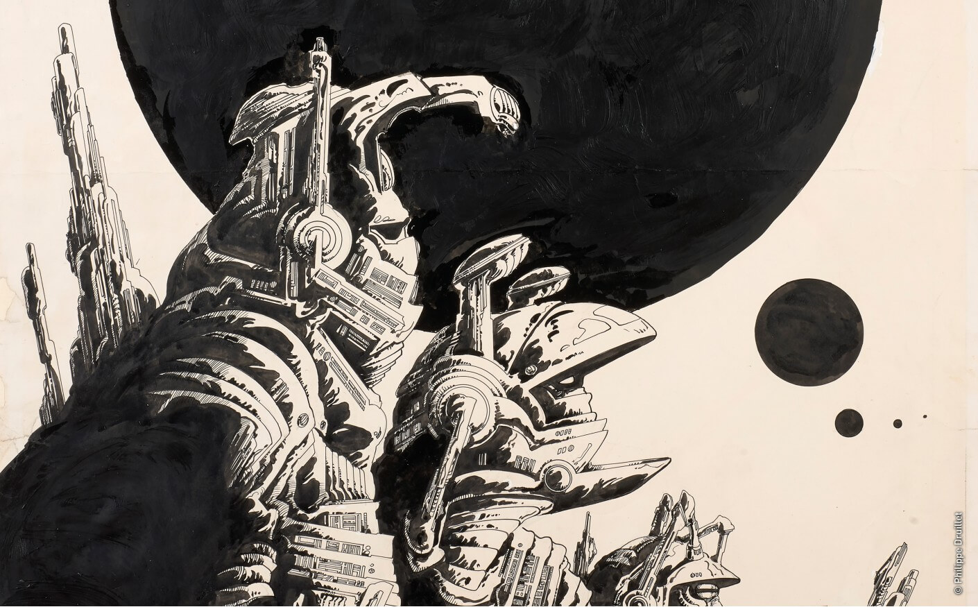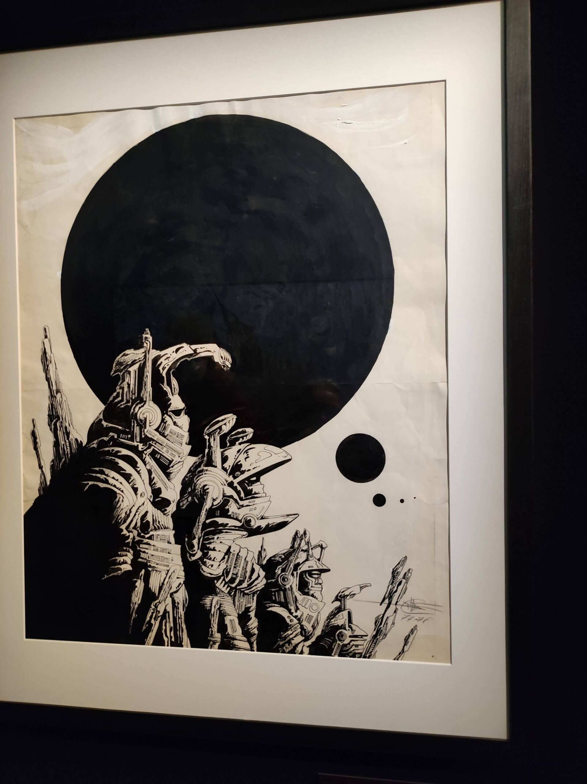 Il suit Jean Giraud et Jean-Pierre Dionnet dans leur nouvelle aventure de Métal Hurlant. Il enchaîne les histoires (La nuit, Salammbô) et devient un maître de la science-fiction à l’international. Décors scéniques, affiches de films, bandes dessinées et pochettes de disques rythment sa vie. C’est tout cela qui est mis en avant dans cette fantastique exposition. L’une des plus belles de cette 50e édition !
