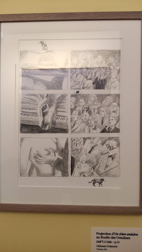 Au fur et à mesure de la visite de l’exposition, Julie Birmant constatait, émue, que les dessins de Clément avaient été très bien mis en valeur. Les dessins de Dali sont à ses yeux vraiment somptueux et la scénariste nous confiait avoir obtenu de son compagnon que ceux-ci ne soient pas vendus pour qu’elle puisse les garder en intégralité. C’est un cadeau qu’il lui avait fait.